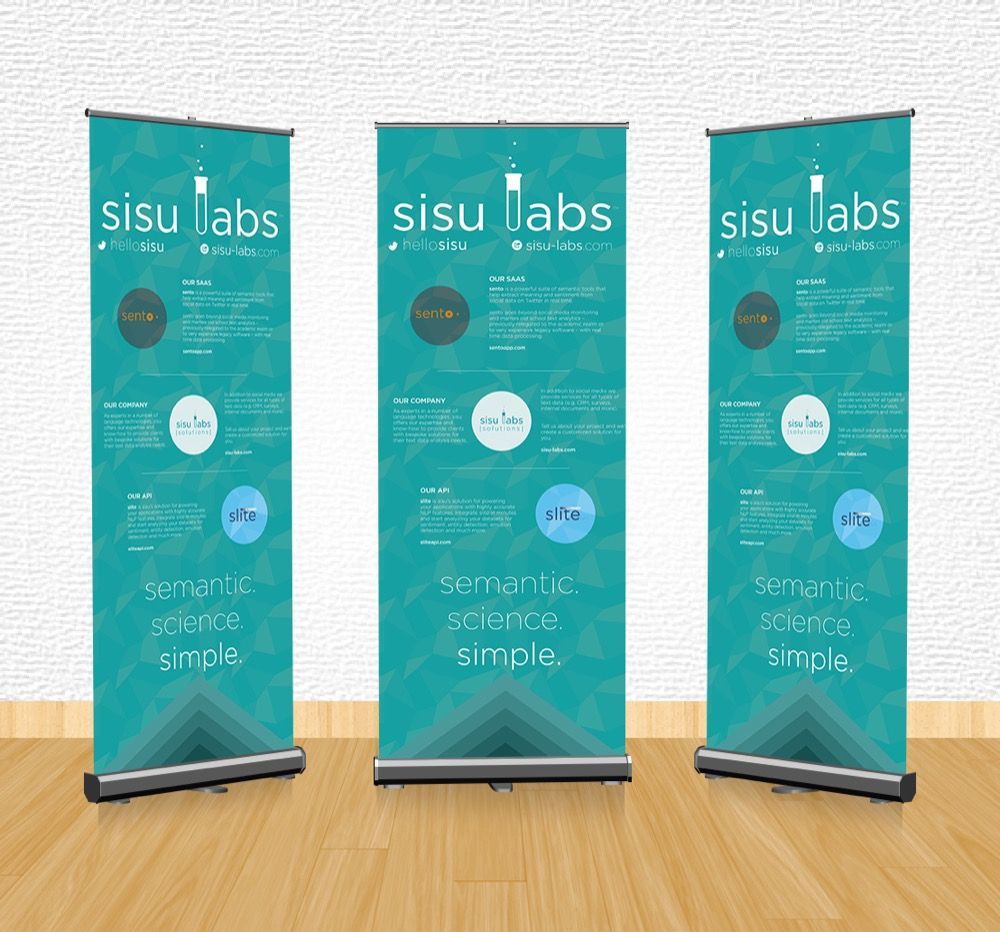 Due to the need of showcasing products and services on fairs and events, a rollup was designed and printed. This would then be shown along leaflets and booklets for attendees.