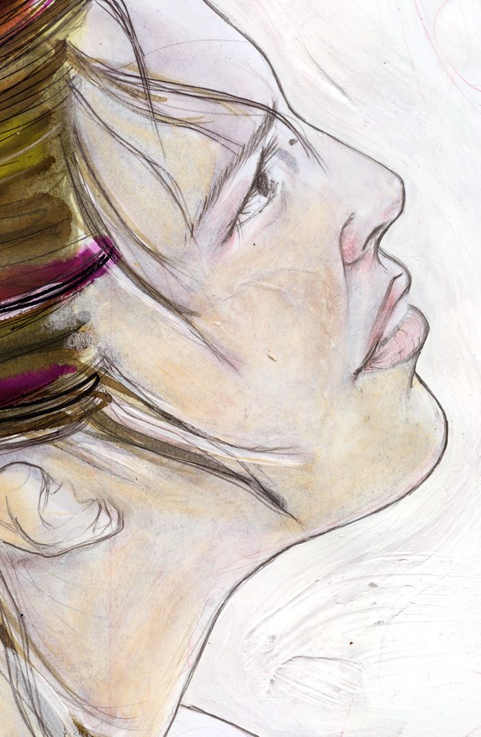 Bea, dibujo realizado con grafito, acrílicos, rotuladores, tintas, anilinas, lapices de colores y ceras.