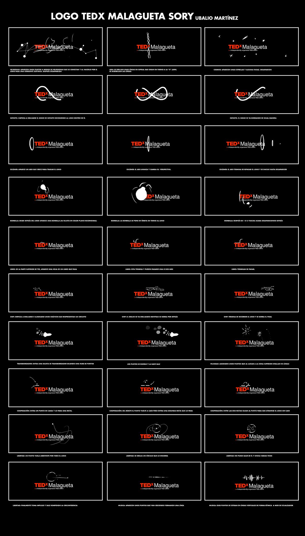 Animaciones de logotipo TEDx Malagueta, para el evento 2016. Una pequeña animación para representar cada una de las ponencias: Música, salud, ciencia, robótica, libertad, felicidad, historia y cooperación.