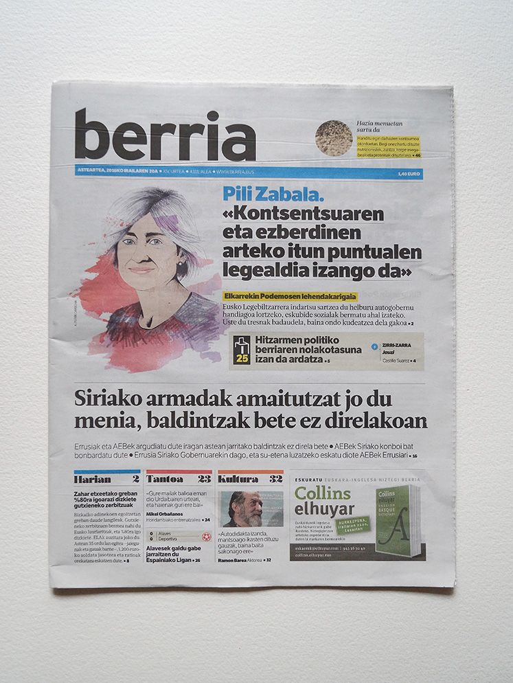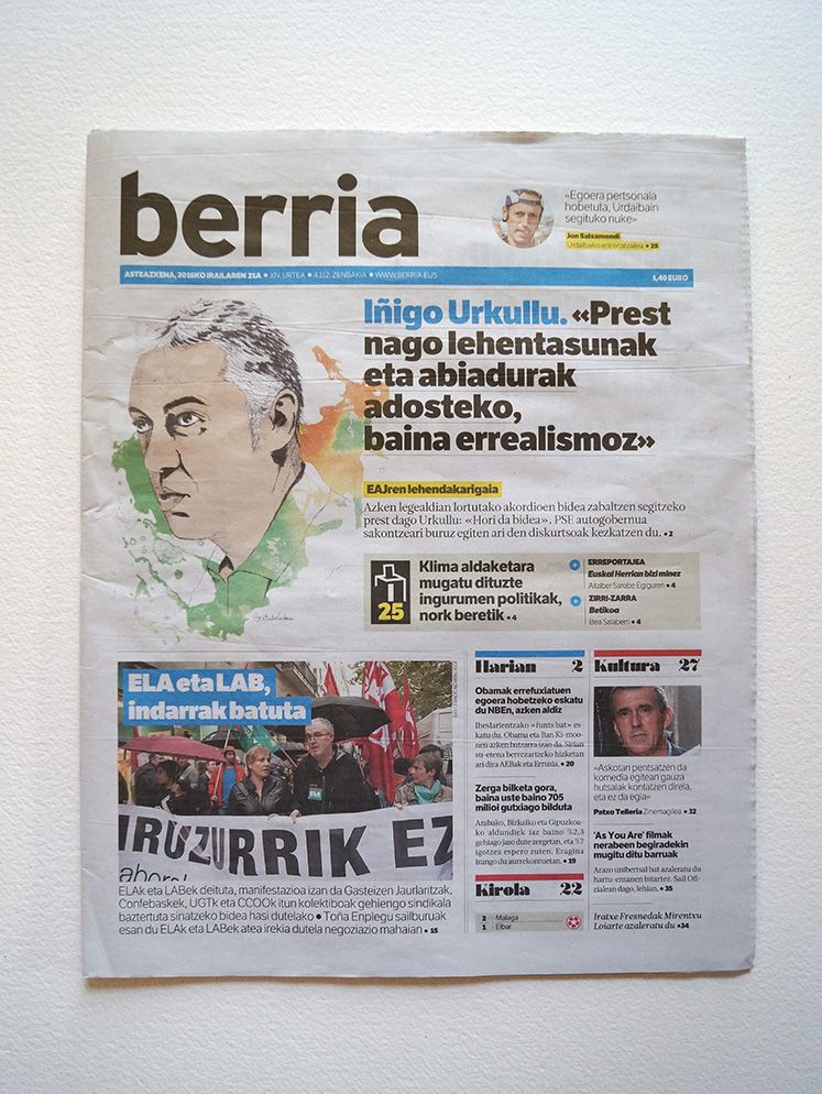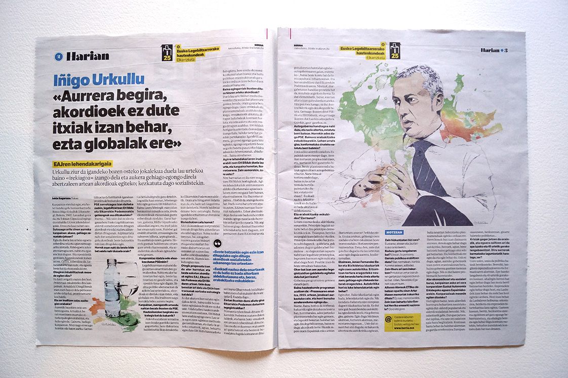 Retratos realizadas para el Berria. El propósito era ilustrar las entrevistas realizadas a los candidatos a las elecciones vascas. Iñigo Urkullu, Pili Zabala y Arnaldo Otegi, luego inhabilitado y sustituido por Maddalen Iriarte, son los protagonistas. PP y PSOE decidieron dar largas y no conceder la entrevista a este medio, aunque los retratos de Idoia Mendia sí que se realizaron porque en un principio aceptó.