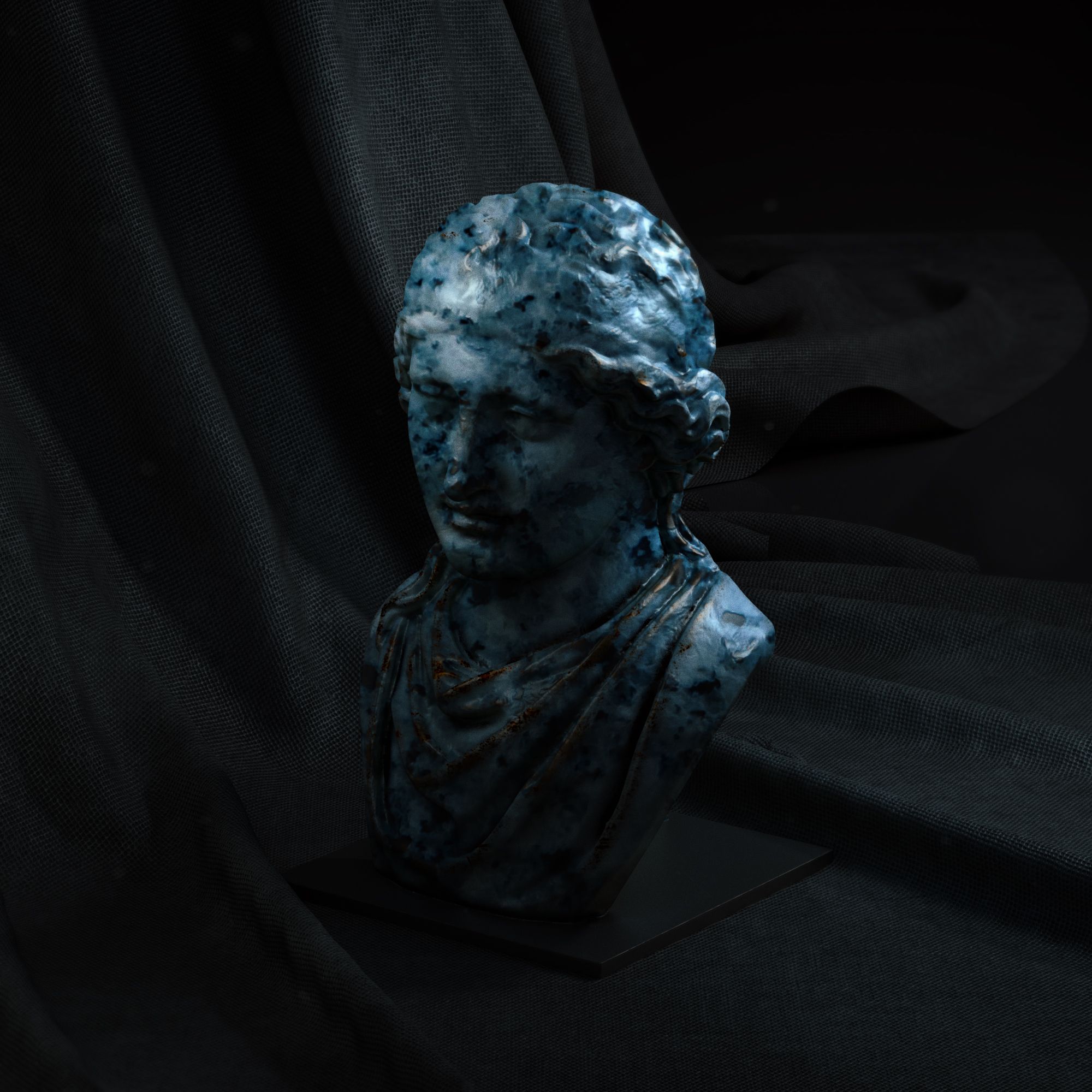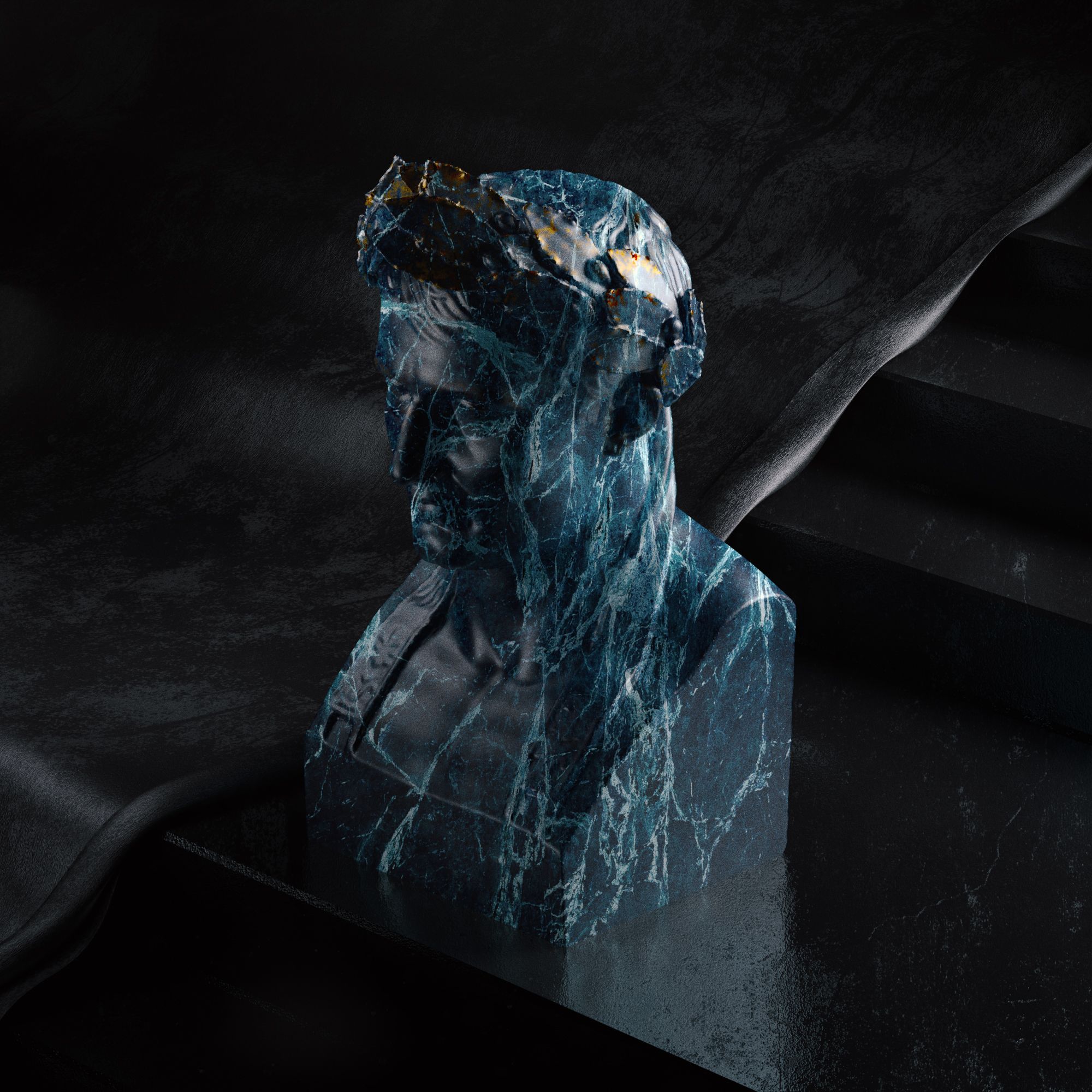 Experiments with marble textures and cloth, using scans from threedscans.com. Made in Cinema 4D, rendered in Arnold.
