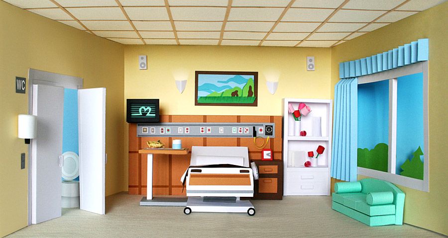 Otros detalles pasan más desapercibidos, aunque valdría la pena remarcarlos, como las ruedas de la cama que, en mi opinión, tendrían que ir paralelas a ésta y no como ahora que obliga a la cama a desplazarse de lado solamente. En cuanto al exterior, trataría de quitar la sombra que hay en la parte superior de la ventana para dar la sensaciópn de que realmente es el cielo....