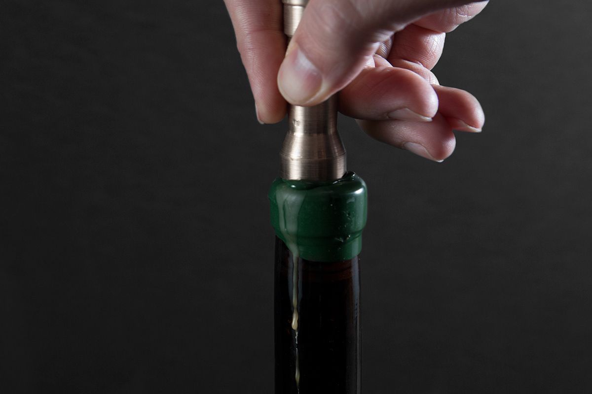 The design concept incorporates each colour of the Extremenian flag (green, white and black). The production of the artisanal wine using traditional techniques extends through to the packaging with the use of green wax as a seal and a manual brass stamp. Each seal is manually created and therefore unique. The number 17 on the top references the year of production. CALÉ is silk screen printed on the bottle in a bespoke condensed typeface, FM CALÉ.