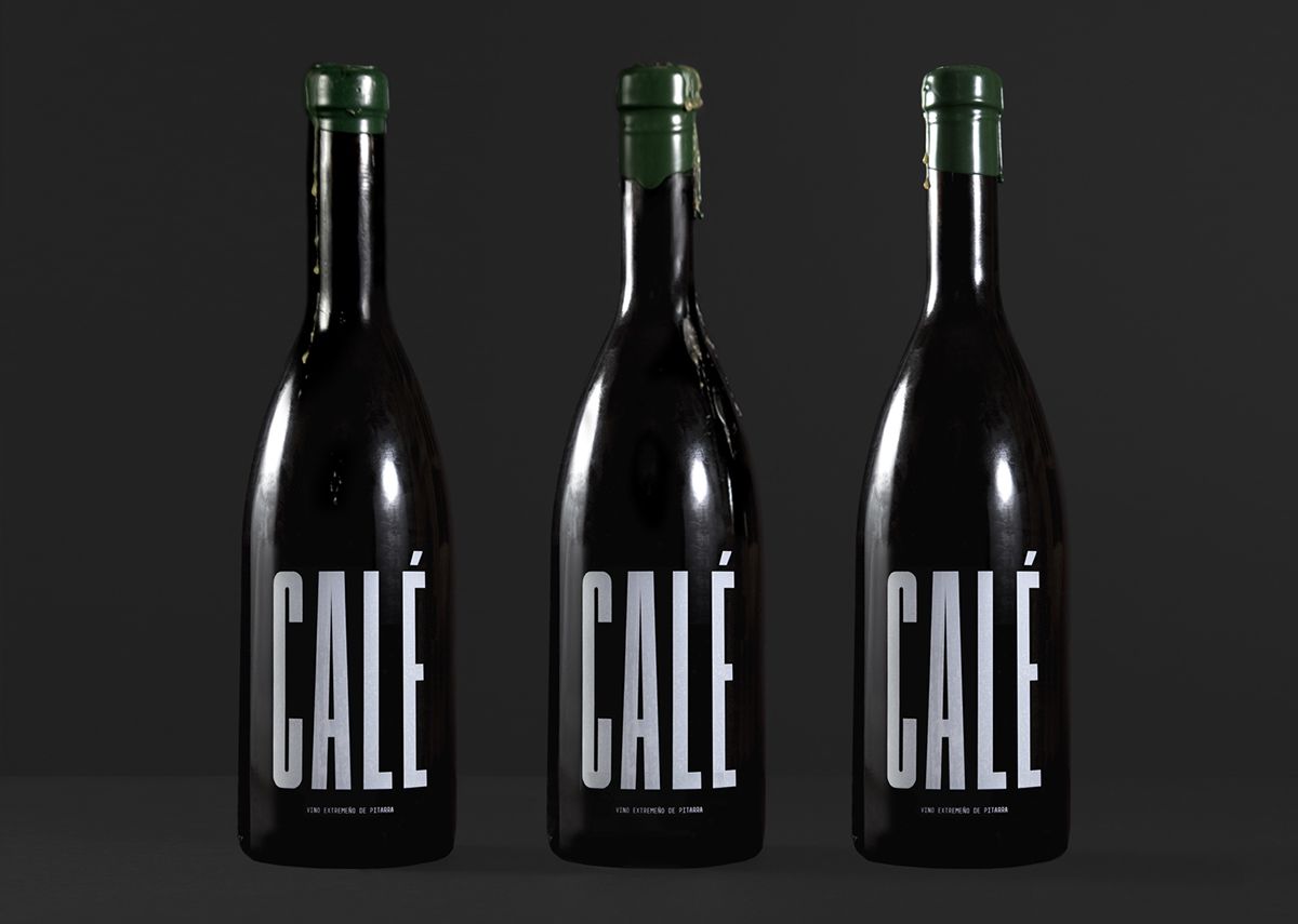 El concepto de diseño incorpora todos los colores de la bandera extremeña (verde, blanco y negro). La elaboración artesanal del vino con técnicas tradicionales se extiende hasta el envasado, con el uso de cera verde como sello y un sello manual de latón. Cada sello se crea manualmente y, por lo tanto, es único. El número 17 en la parte superior indica el año de producción. CALÉ está serigrafiado en la botella con una tipografía condensada a medida, FM CALÉ.