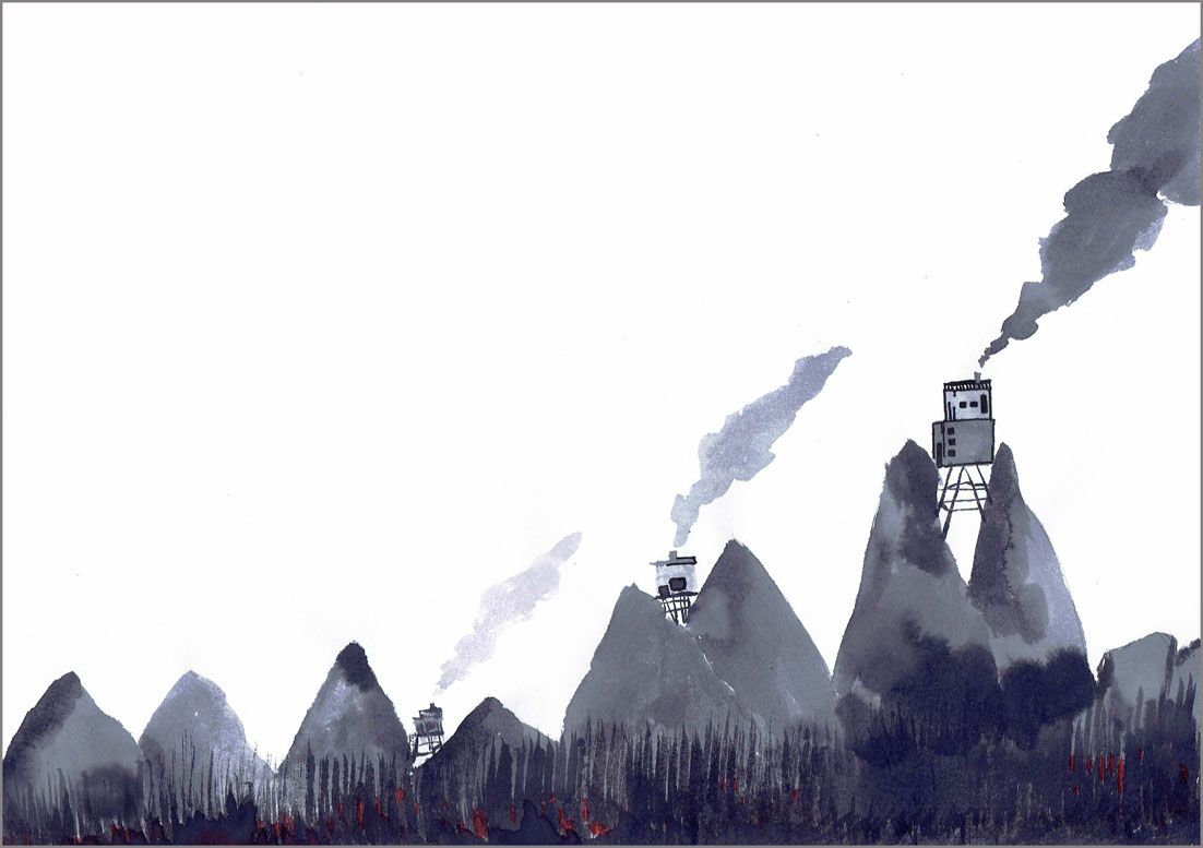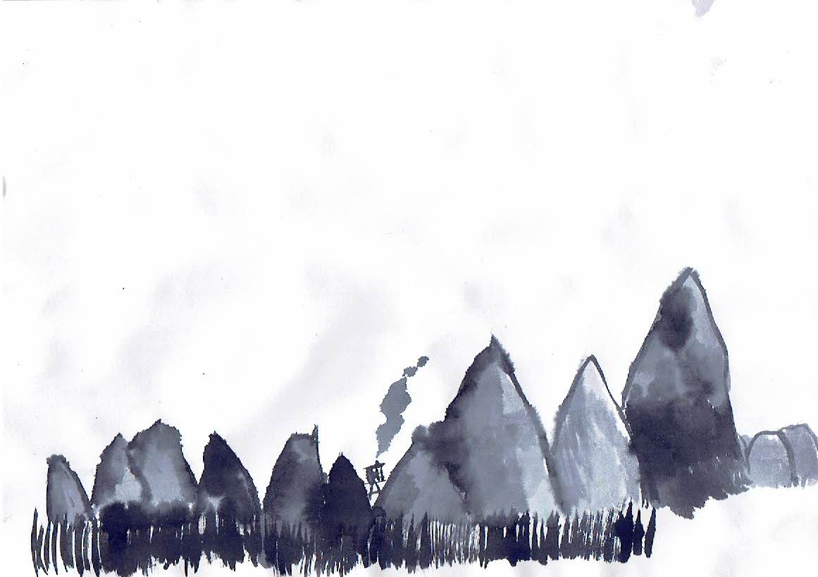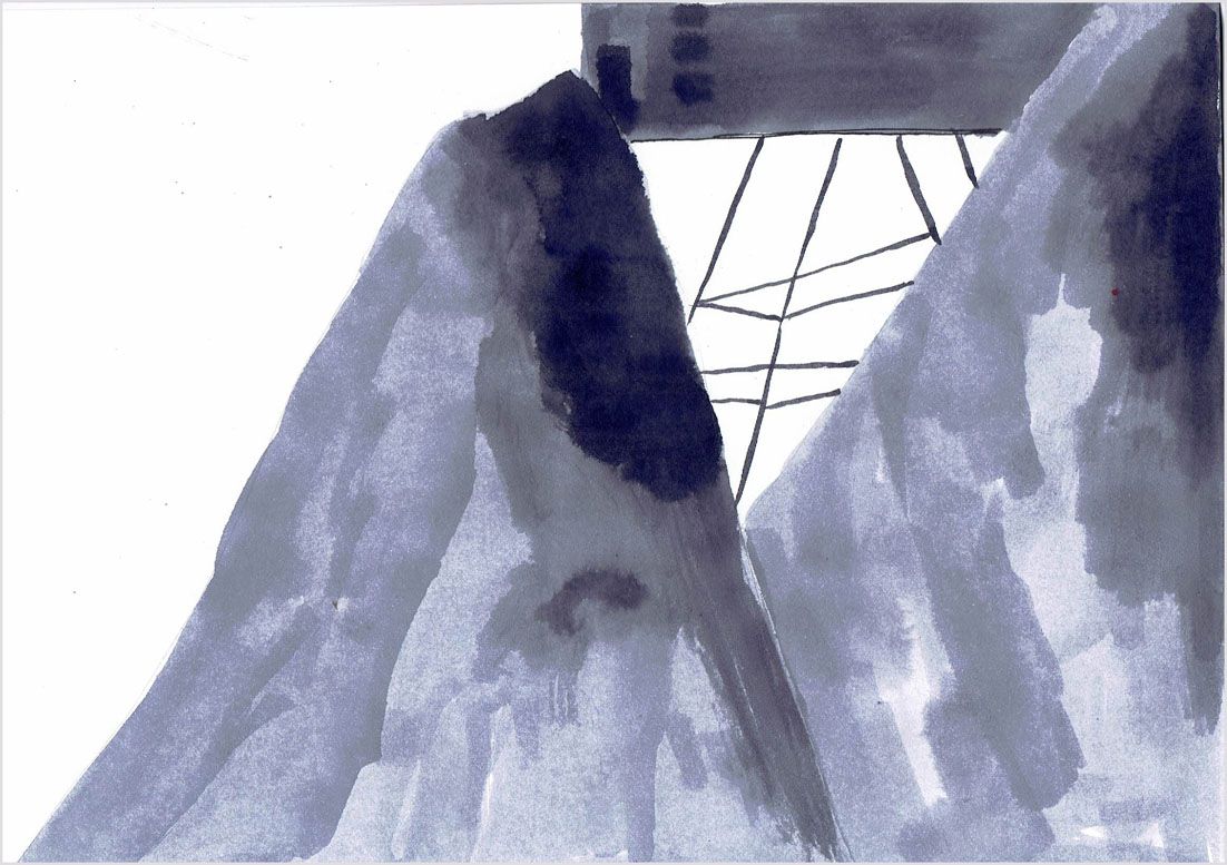 -Sería en escala de grises, y daría algunos toques con tinta roja pura o diluída en algunos puntos que quería destacar.