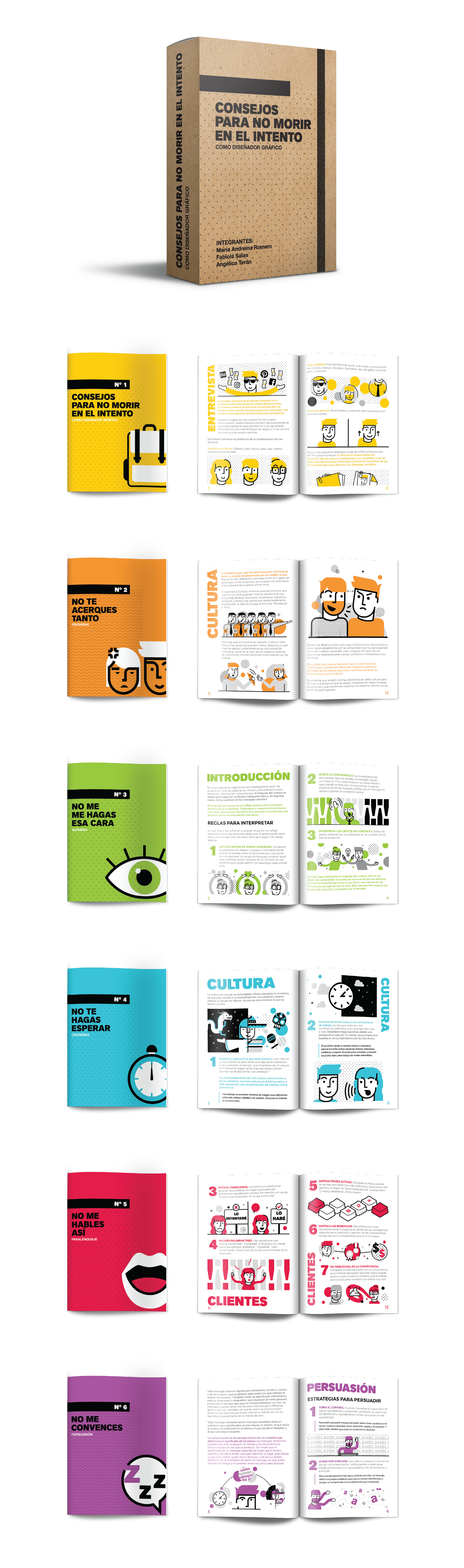 Es una serie de folletos infográficos sobre lenguaje corporal para diseñadores, donde se abordan temas desde como comportarse en una entrevista, a manejar tu tiempo si eres freelance, saber las diferencias culturales al momento de contactar clientes, y muchas cosas más.