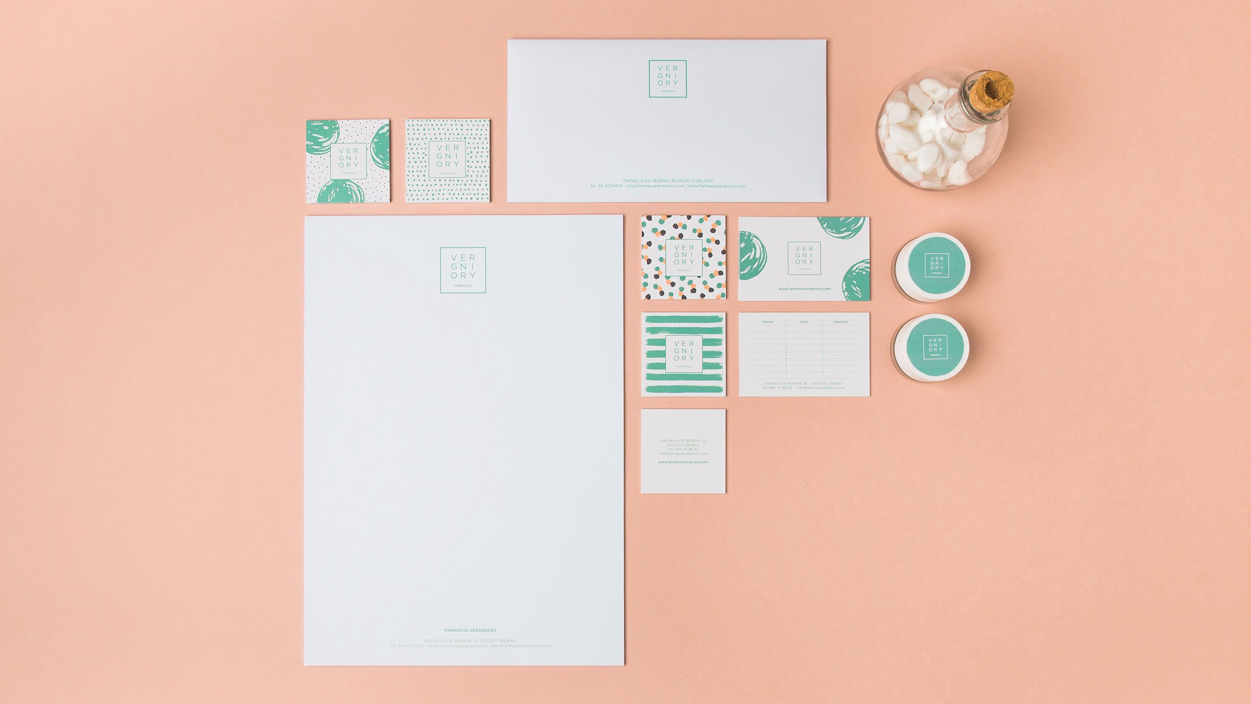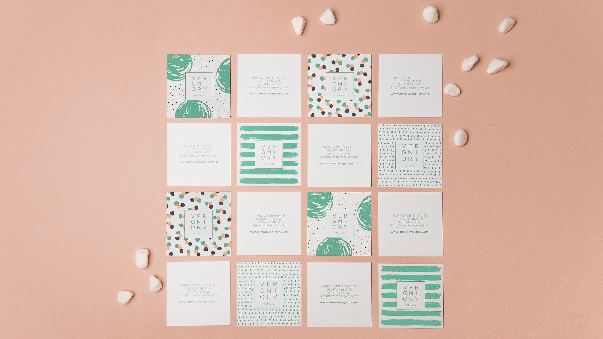 La farmacia Vergniory toma el relevo de una farmacia tradicional muy asentada en su zona. Para evidenciar el cambio de enfoque y de dueños, quisimos darle a la identidad un carácter propio, fresco y juvenil que se alejara de los códigos típicos del sector.