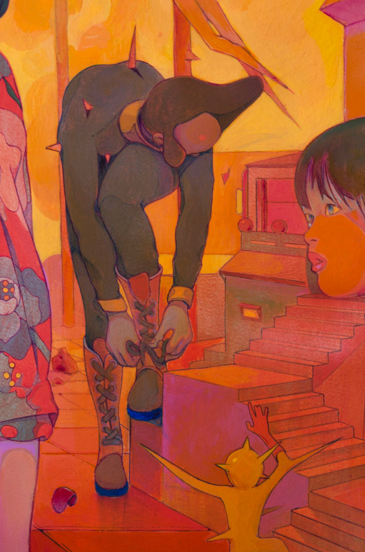 Luego me acostumbro a ciertos procesos o me vicio trabajando en photoshop, hice este ejercicio con acrílico, gouache, lápiz de color y estilografos al agua. Me hubiese gustado pintar algo así para mi curso aquí en domestika desgraciadamente por los tiempos de filmación es bastante difícil ya que me ha tomado 7 Dias, he resuelto esta ilustración con todas las técnicas que se filmaron en mi curso, cualquier duda la resolvere en el foro :)