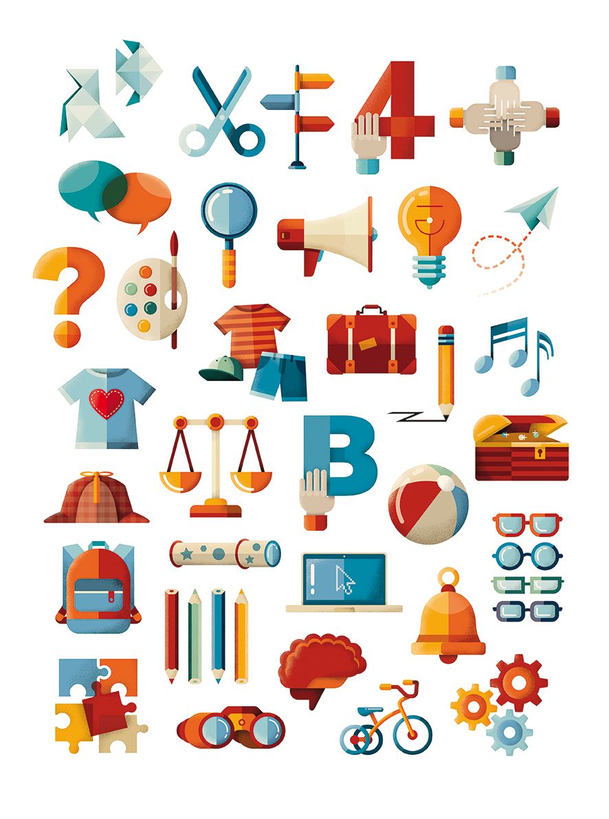 Ilustración de iconos para la realización de una moleskine para ‘Grupo SM’.