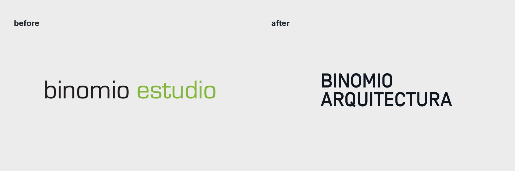 Como respuesta a su estrategia de expansión, se les propuso un cambio de naming; de BINOMIO ESTUDIO a BINOMIO ARQUITECTURA.