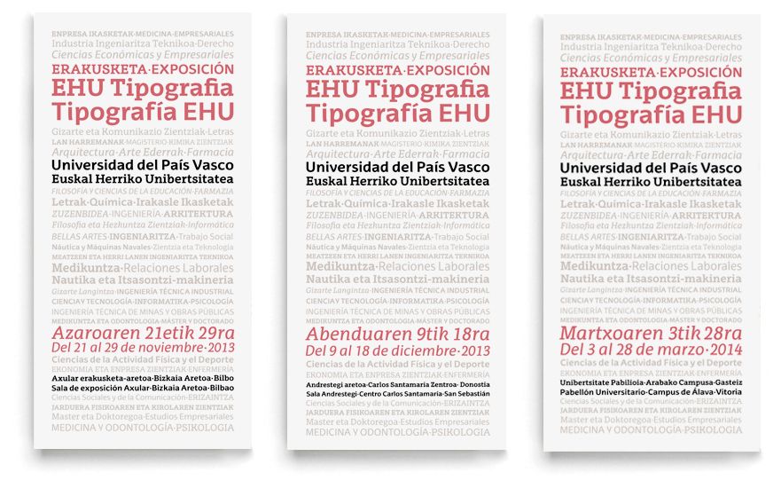 La Universidad del País Vasco/Euskal Herriko Unibertsitatea decidió convertirse en la primera universidad española en tener una tipografía corporativa a medida. Una vez finalizado este proyecto se realizó una exposición pública para dar a conocer a toda la ciudadanía este proyecto. La exposición tuvo lugar en el Bizkaia Aretoa de Bilbao.