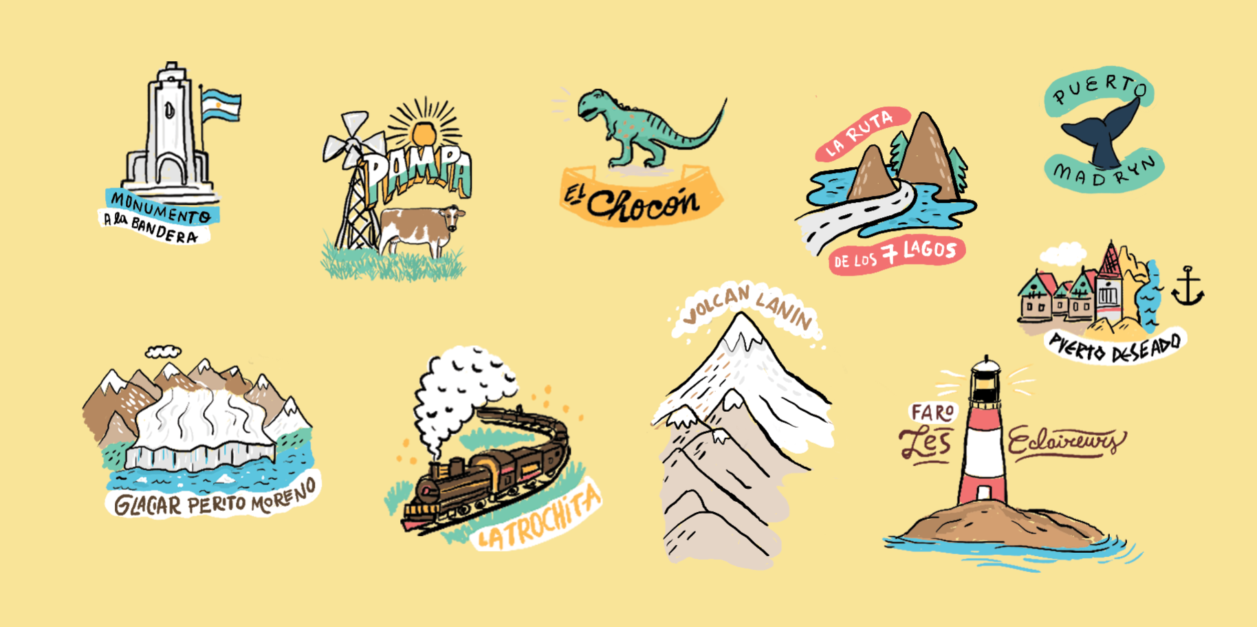 We make a lot of illustration representing the iconic things that represent each part of the country.