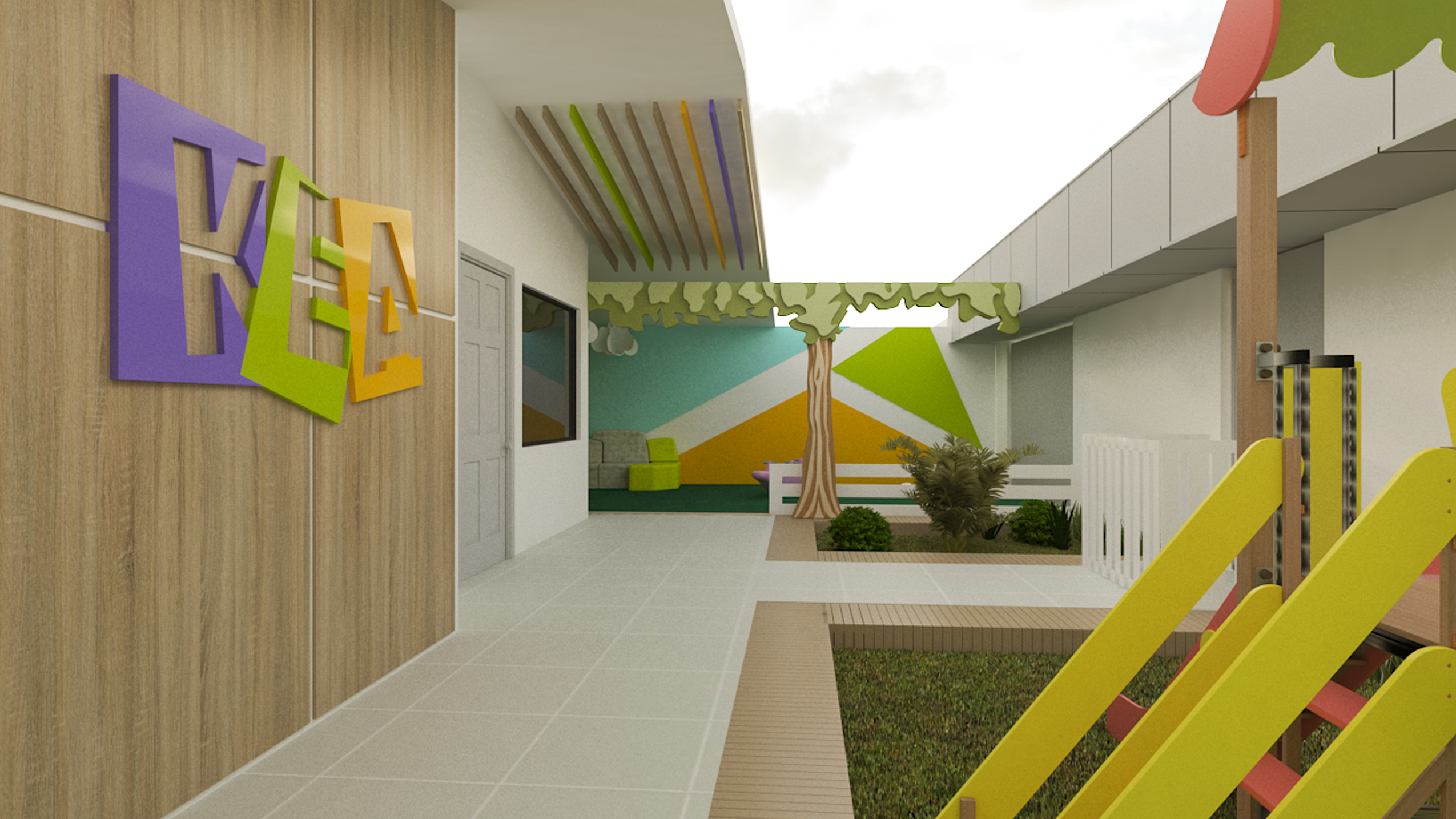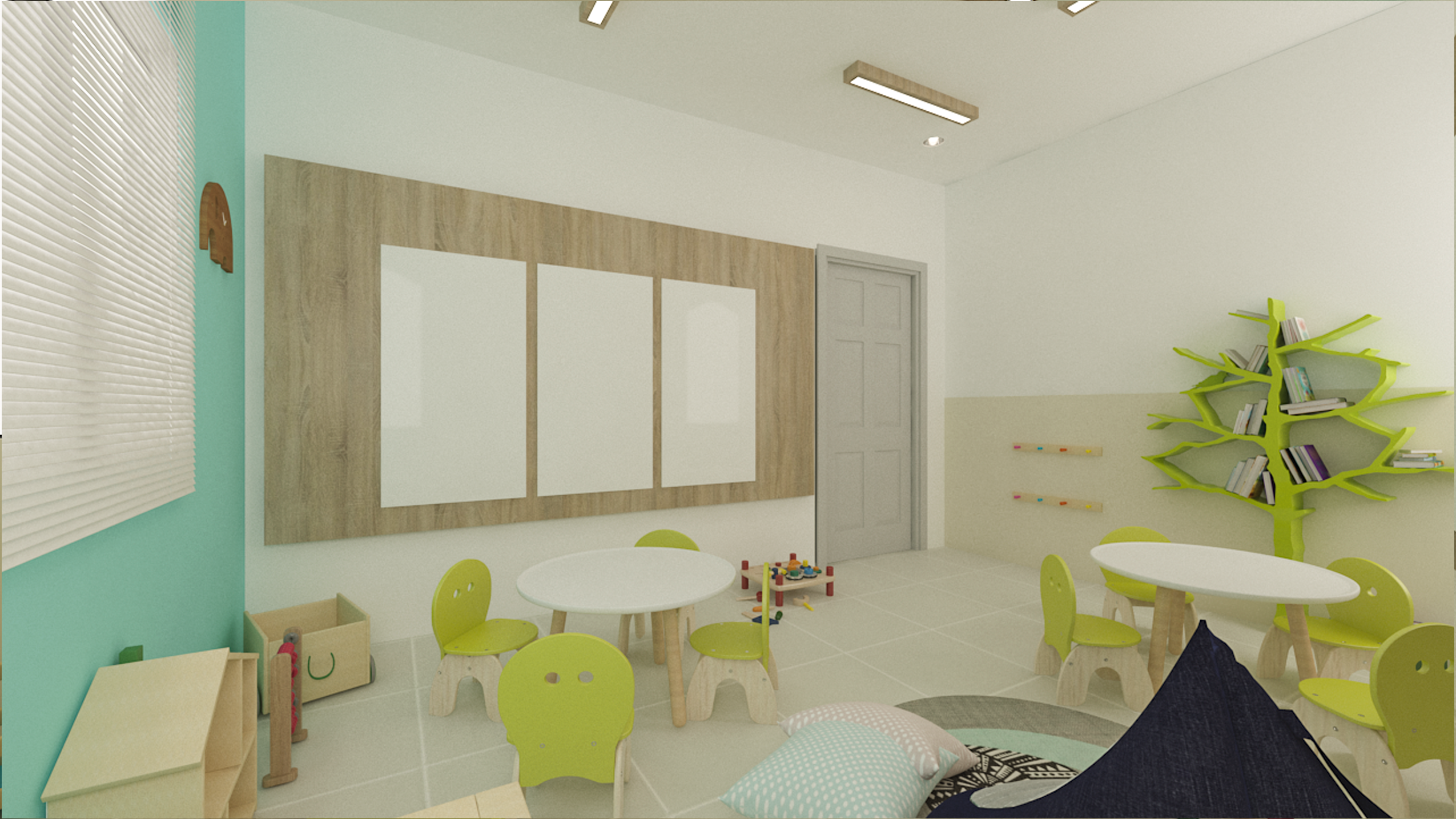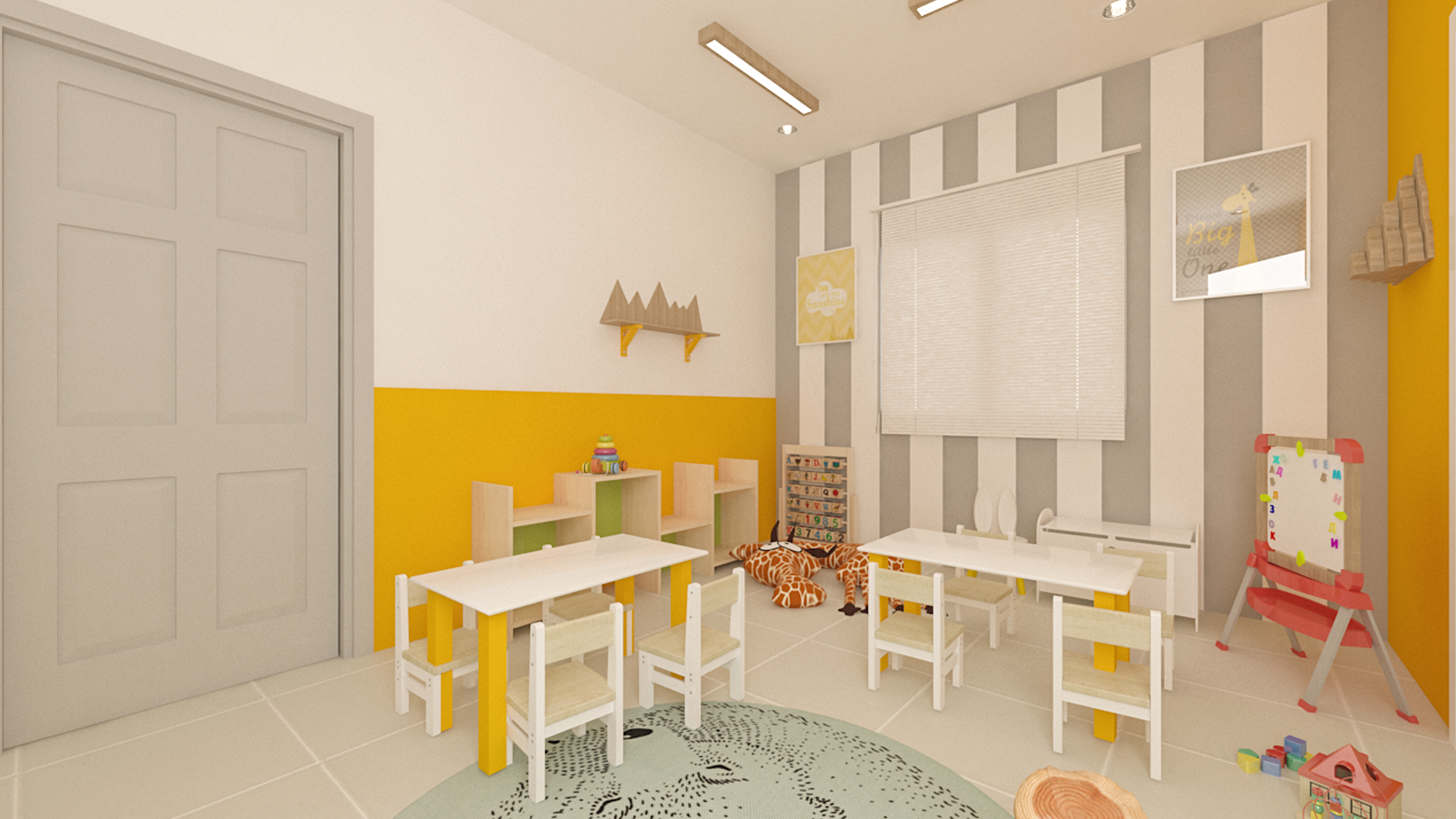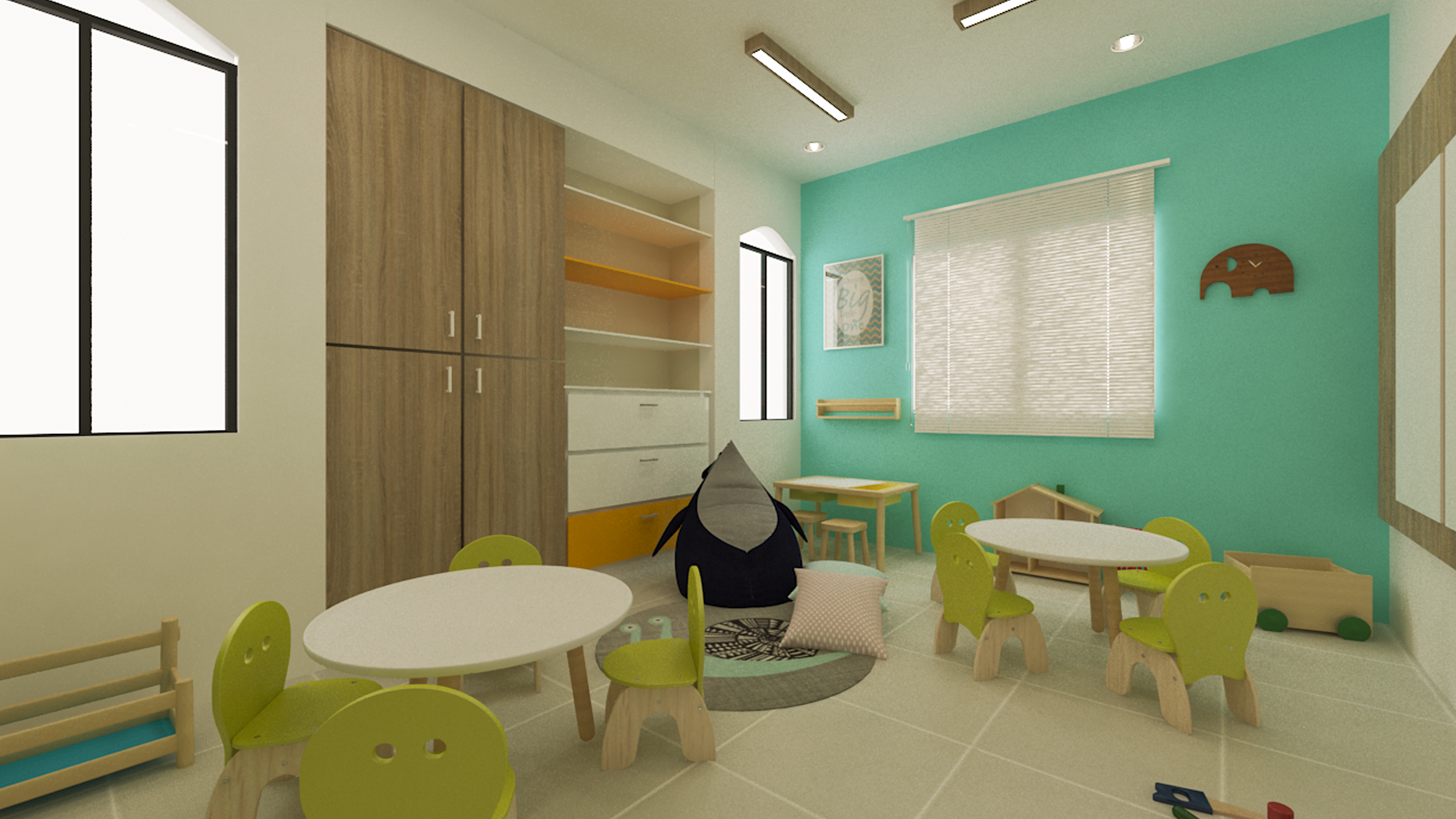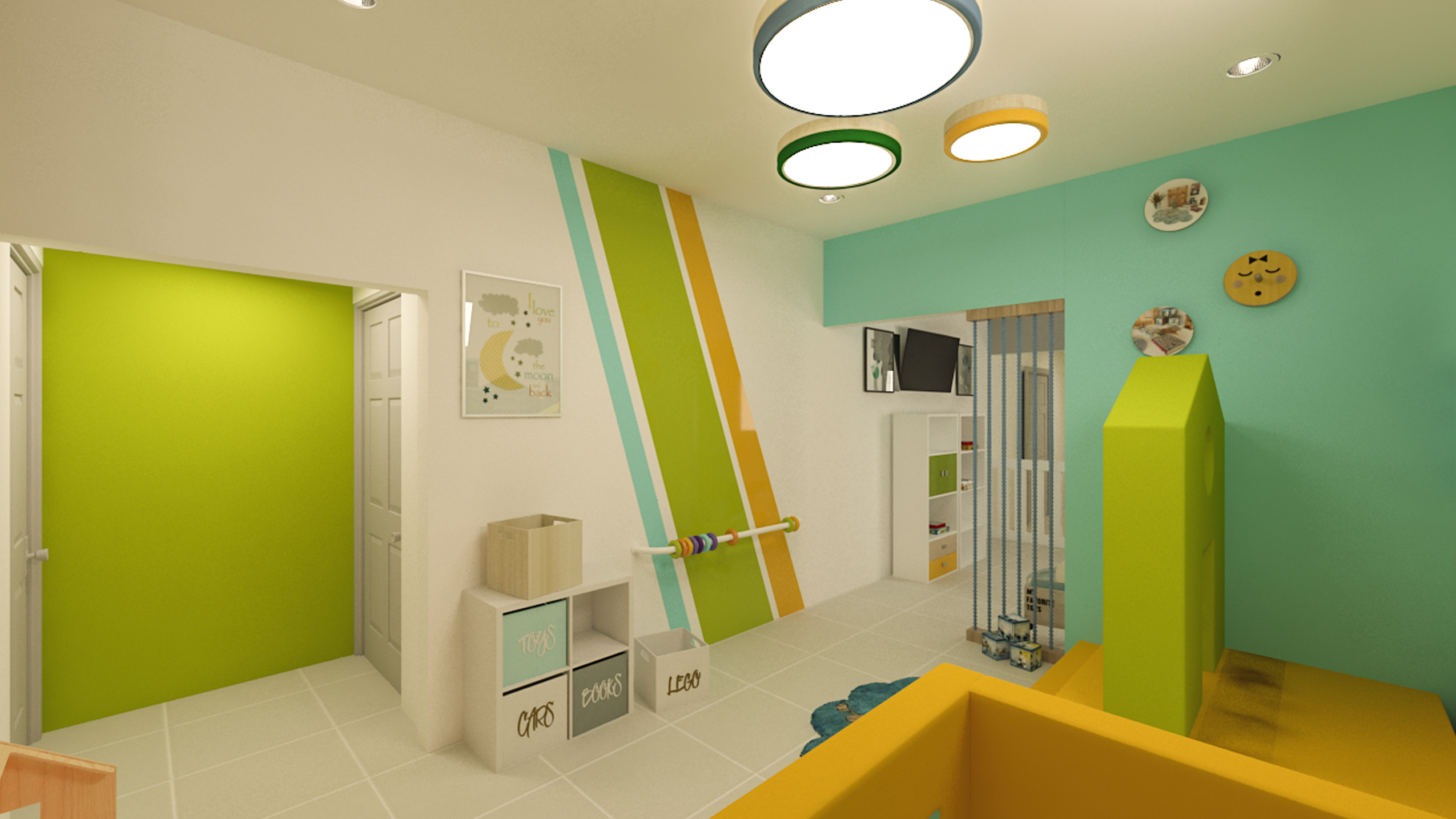 Excelente uso de la geometría y el color. Una combinación que crea espacios alegres pero serenos. Genial..