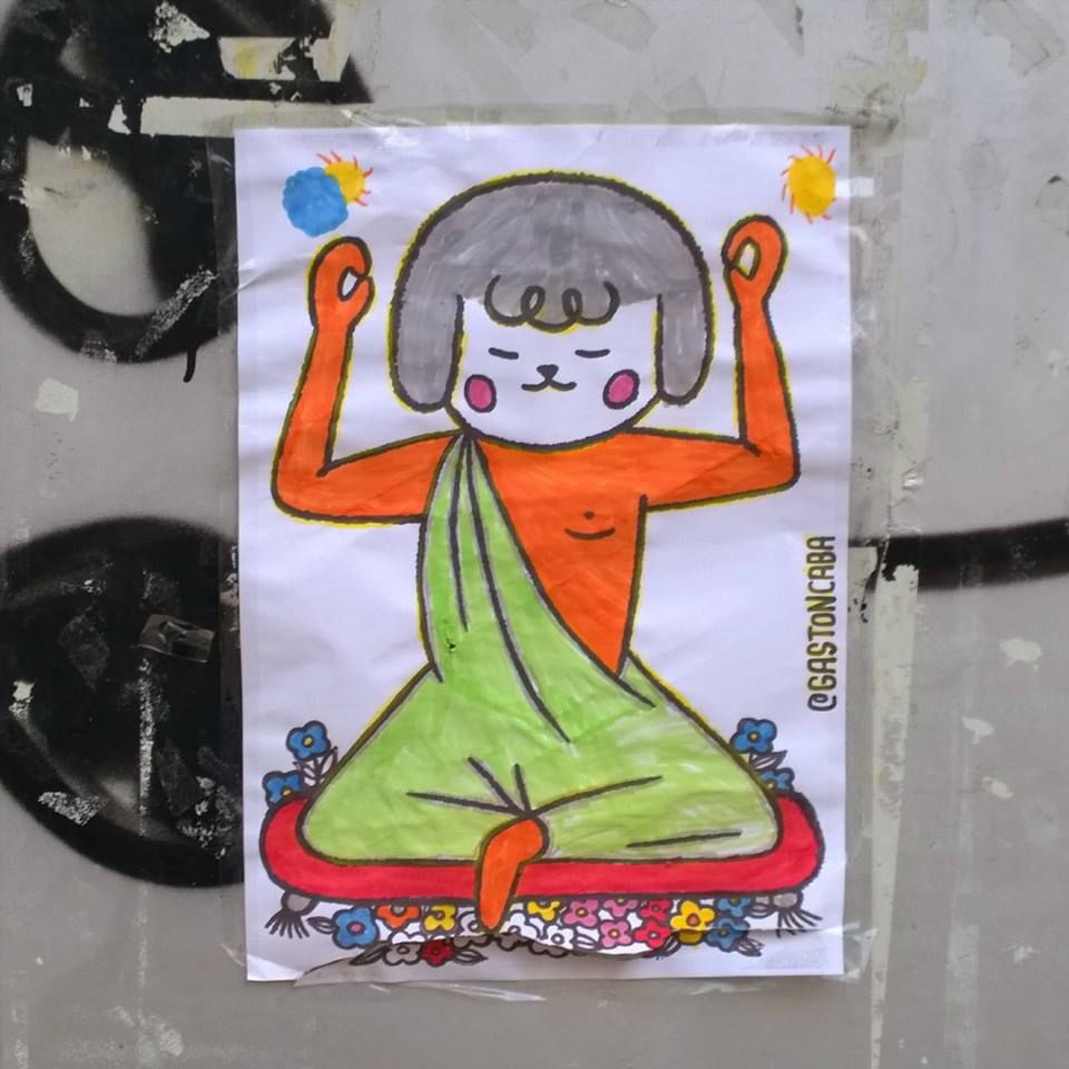 Había pegado un cartel con un dibujo de un perrito buda (este que ven debajo):