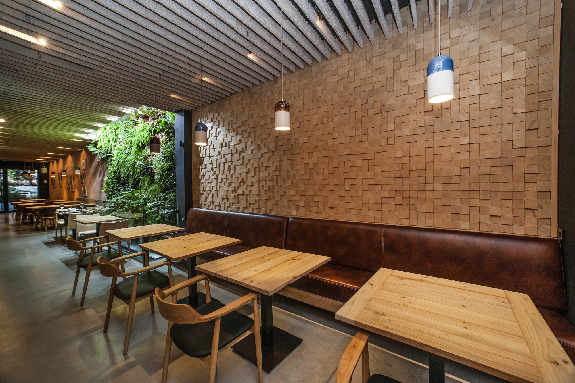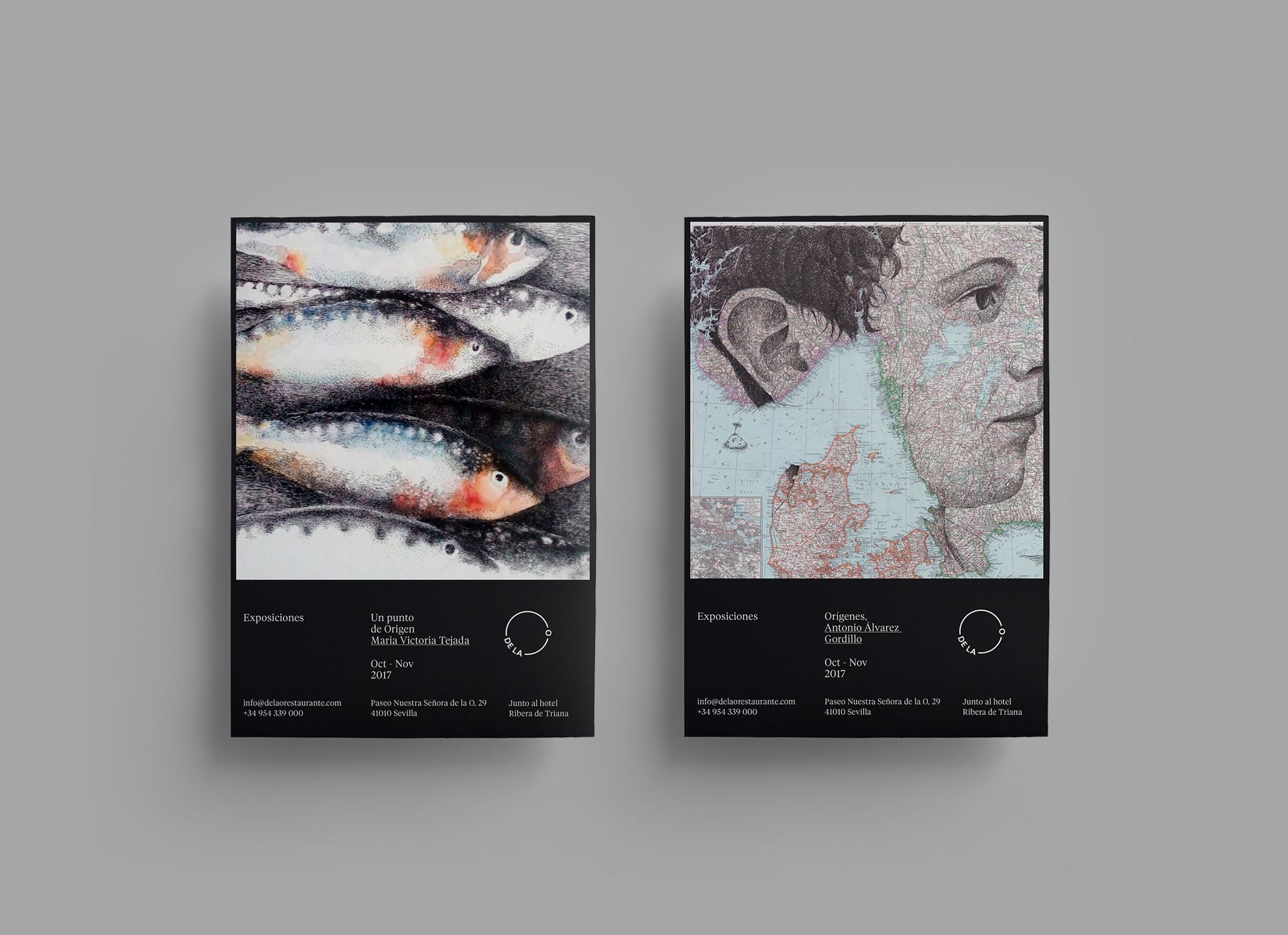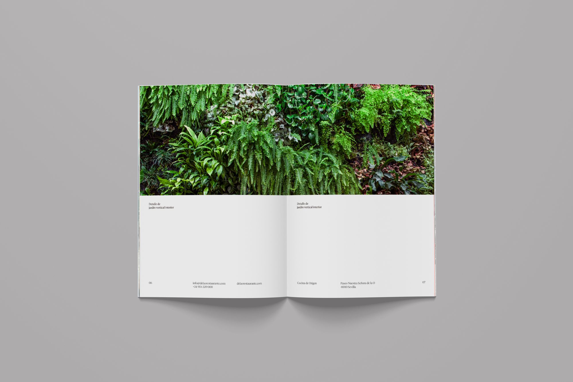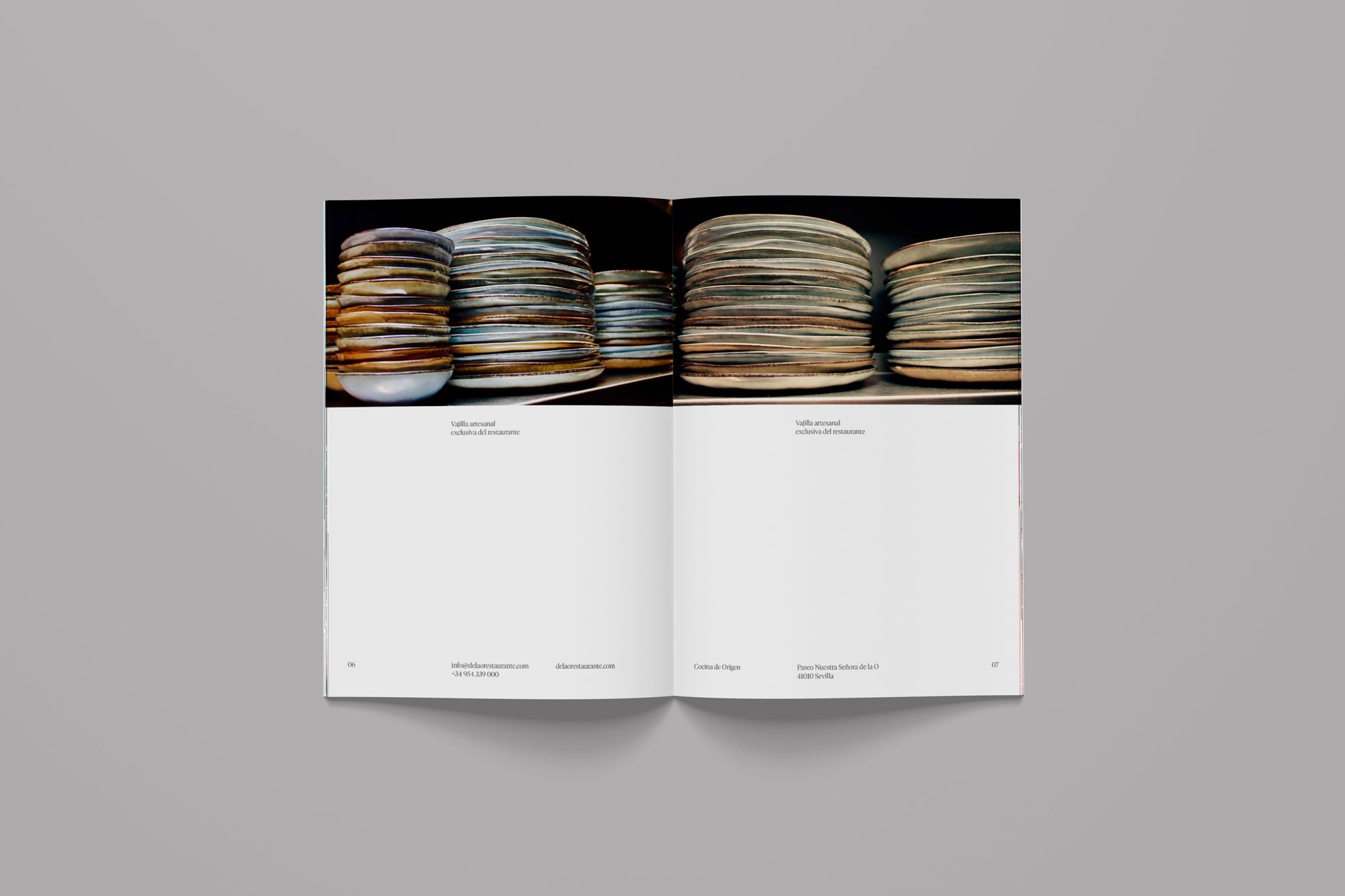 Para el desarrollo de la marca colaboramos con los arquitectos autores del proyecto Gema Aguilera Gómez y Manuel Llerena Maestre, a su vez propietarios del restaurante. La paleta cromática la obtenemos de materiales empleados en el propio local, donde el negro de la entrada combina con diferentes tonalidades de marrones y grises que conforman los paramentos verticales y horizontales. Bajo estas pautas, creamos la página web, papelería corporativa y una pieza editorial que funciona como carta y publicación periódica en la que mostrar su historia, eventos y exposiciones que en el restaurante se celebran.