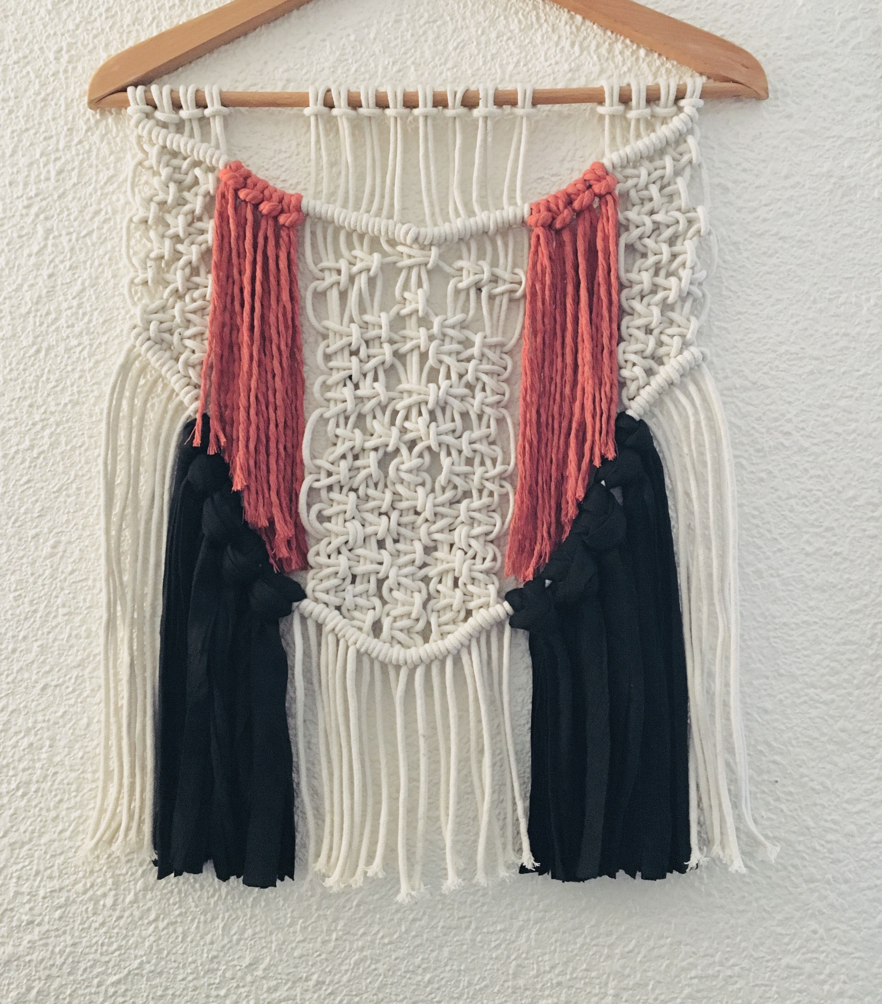 Mi tapiz. Mi primer tapiz ha sido una introducción como tal, al macramé, desde la idea inicial, hasta el moodboard y después hasta llegar al tapiz final, han surgido cambios. En la paleta de color sobre todo, puesto que, al ir haciéndolo sentí que tenía que meter el color negro para crear contraste. También fueron surgiendo algún tipo de problema, de los cuales aprendí mucho.