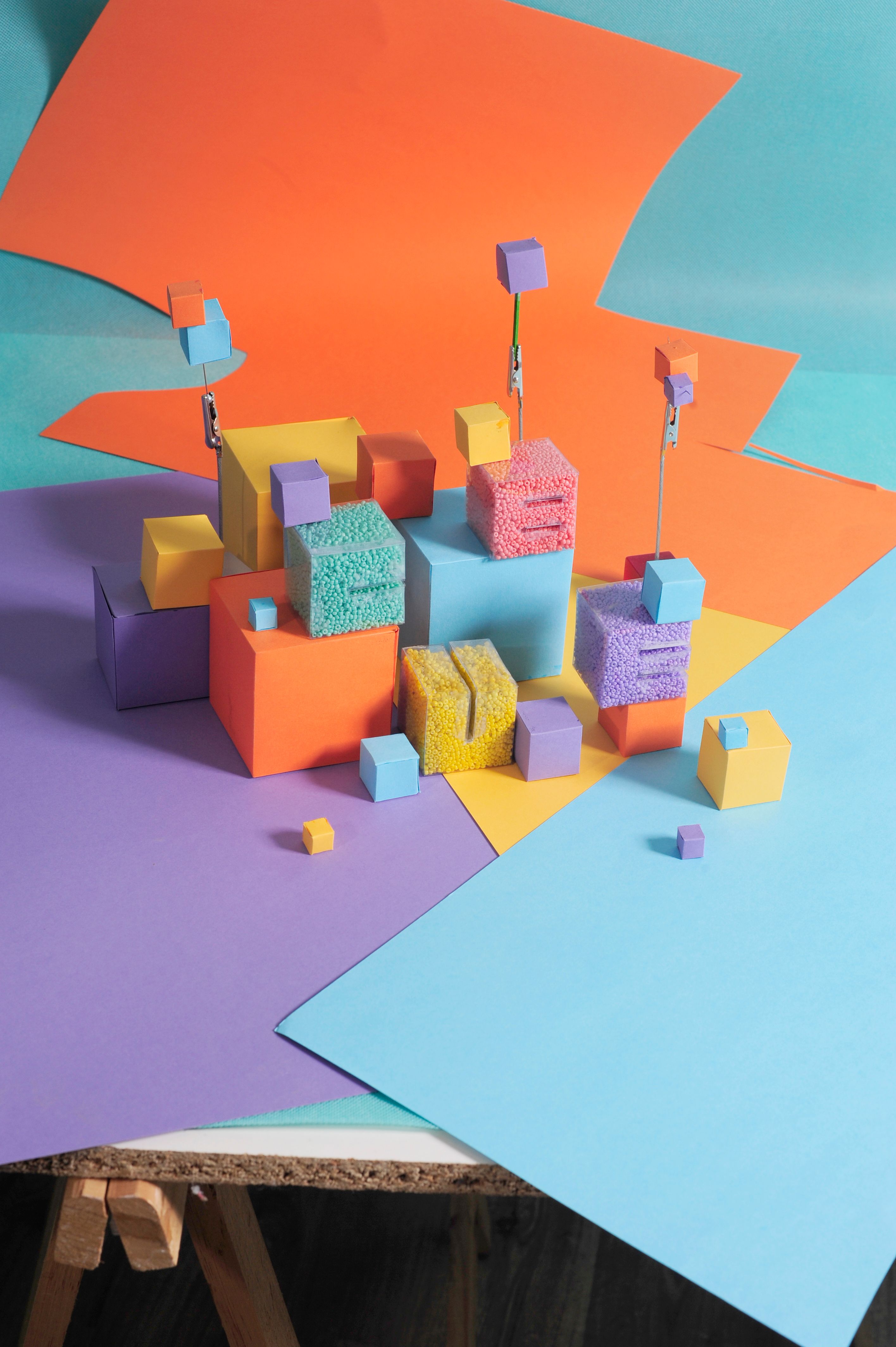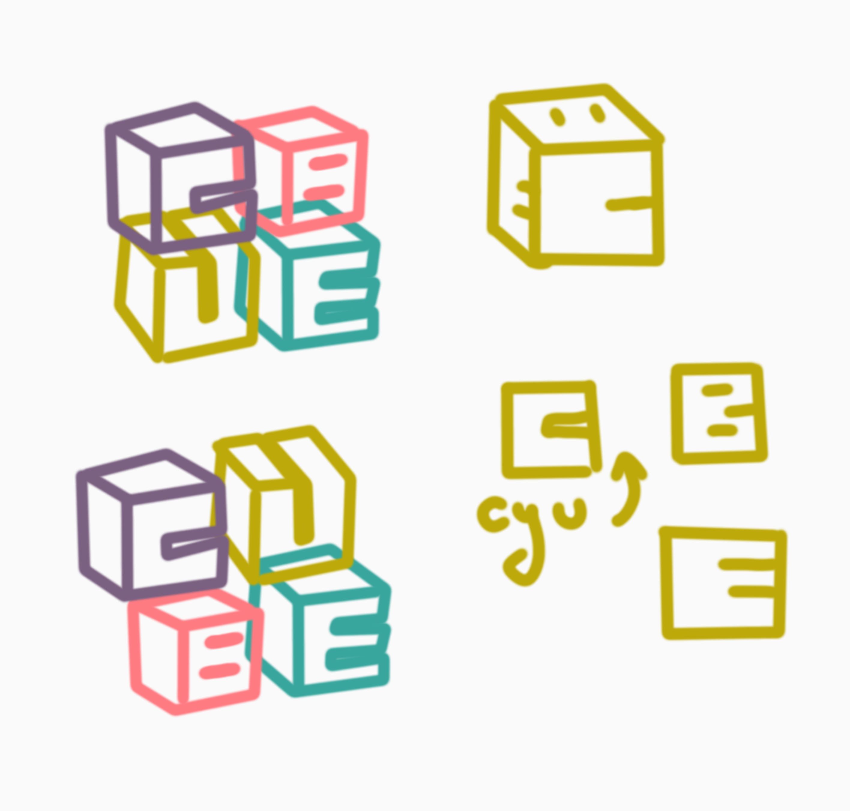 En un principio la idea era crear un único cubo con las letras en él, pero era demasiado complicado para empezar jajaja, con lo que decidí crear cubos que unidos fueran un cubo con las letras, pero quedaba un poco simple y la idea finalizo en un popurri de cubos :).