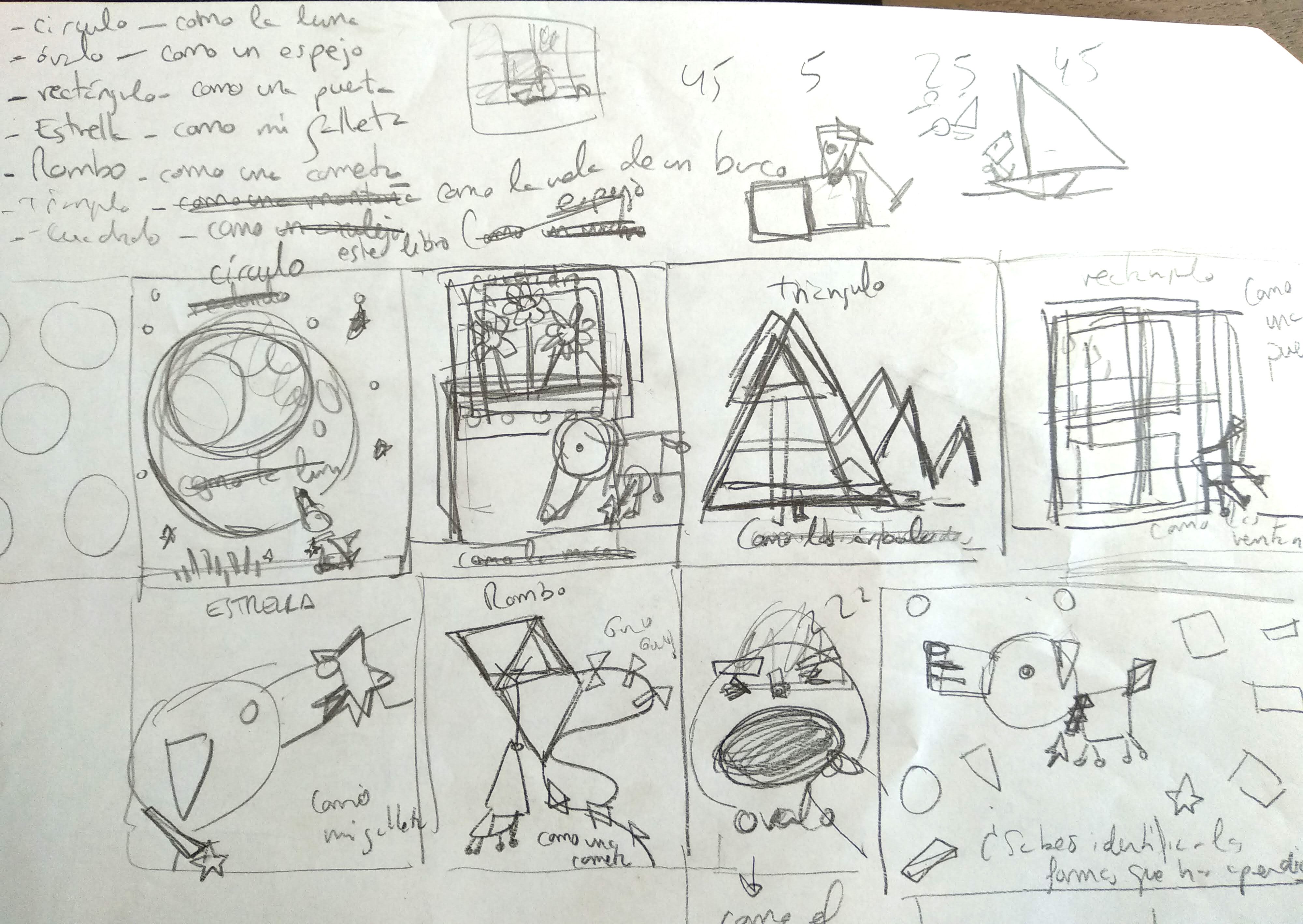 Cuelgo aquí mi proyecto final del curso, que me ha parecido divertido e interesante. Después de mucho darle vueltas me centré en la idea de hacer un libro sencillito para niños muy pequeñines que todavía no saben leer. La idea es que a través de un personaje, en este caso un perrito, se enseñe a los niños las formas básicas. El perro a su vez está hecho con las mismas formas que aparecen a lo largo del libro y en la última página los niños tendrán que reconocerlas en el propio animal. Cuelgo sólo el guión visual, porque en el story board tiendo a hacer garabatos que luego me sirven para poco porque acabo cambiando muchas cosas en el arte final. Las tipografías usadas son: Litte miss cursive y KG primary Penmanship. Por supuesto se admiten sugerencias :). Espero que les guste.