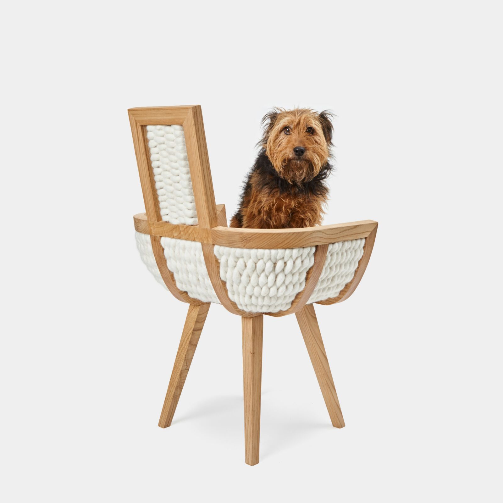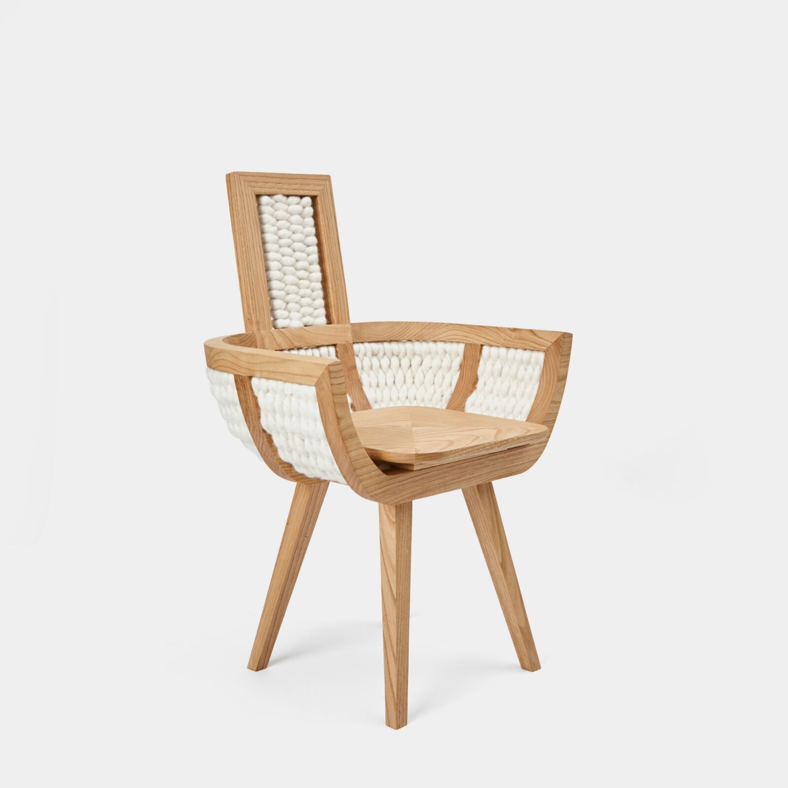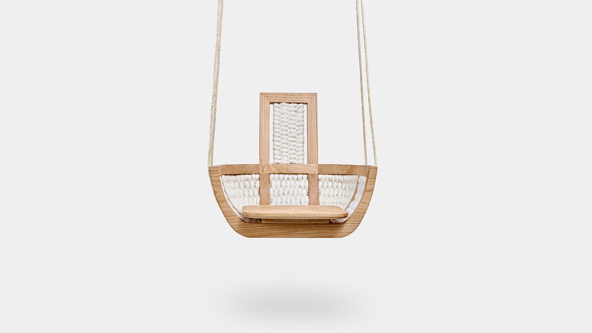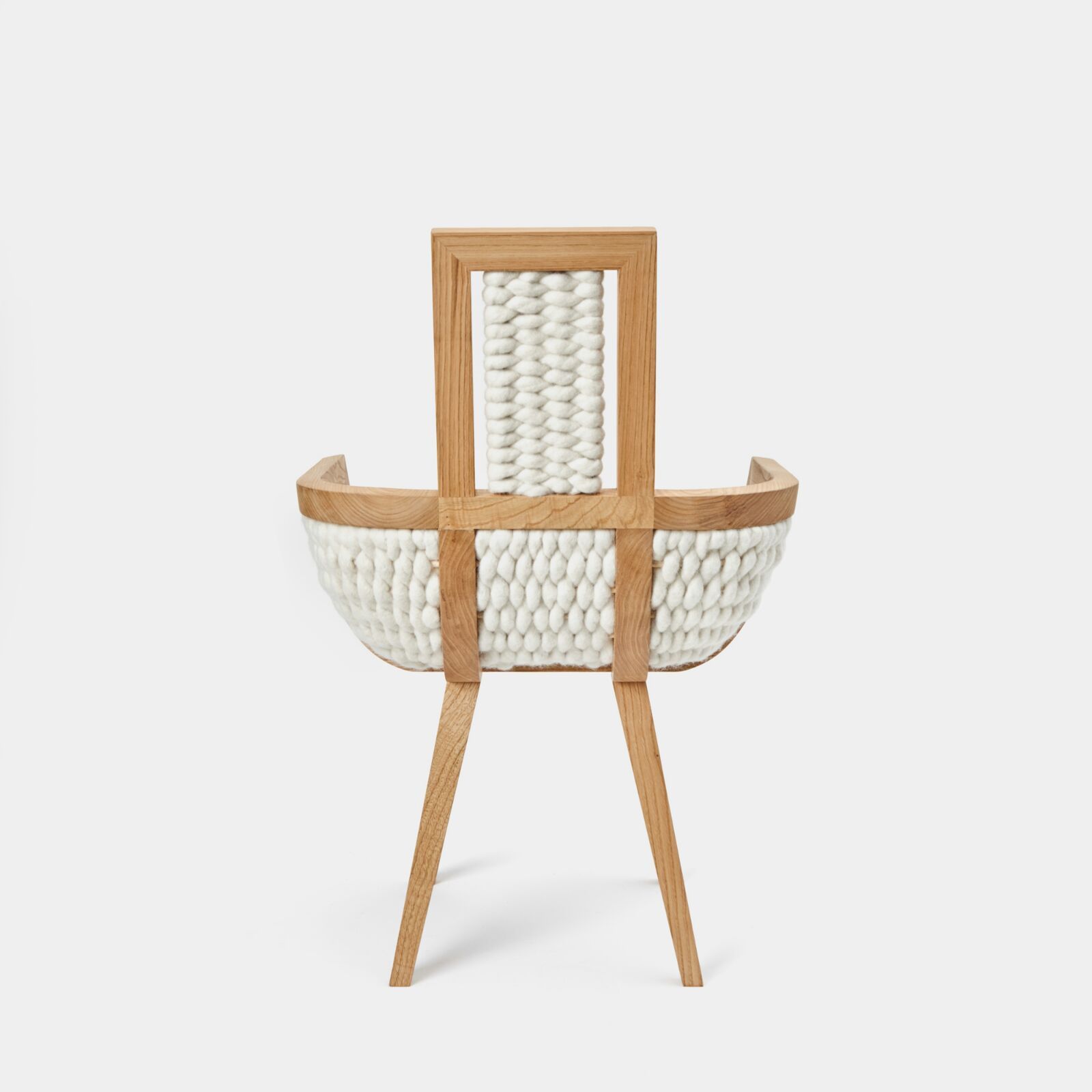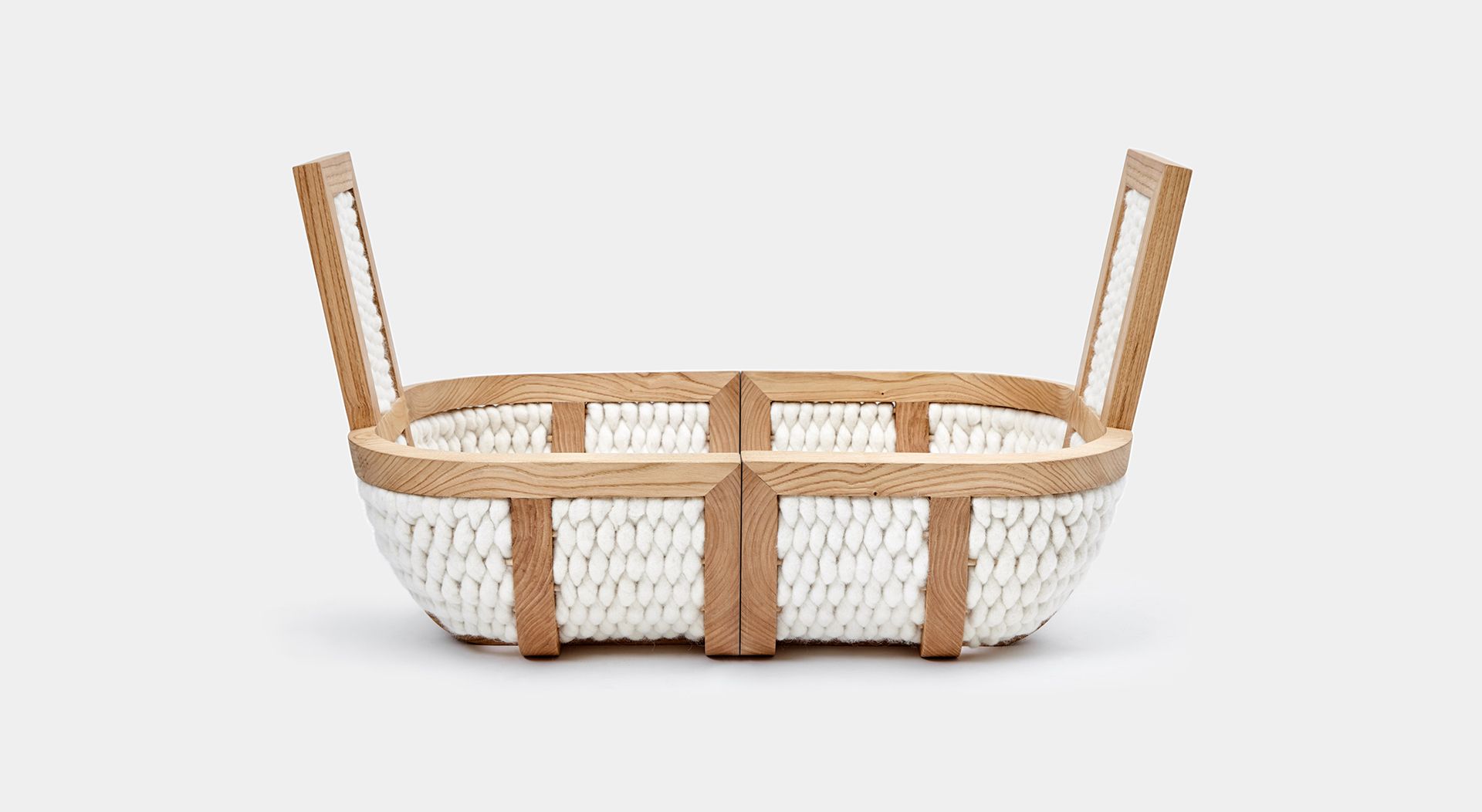 La esencia de este proyecto radica precisamente en la reinterpretación de esta disciplina. Se trata de un proyecto personal desarrollado con la estrecha y maravillosa colaboración de Idoia Cuesta. Se parte de imaginar un cesto como un elemento versátil, capaz de transformarse en diferentes objetos, ya sea una silla, un columpio o una cuna… Al igual que los usos son diferentes, también los materiales del intradós lo podrían ser. En esta ocasión hemos optado por la calidez de la lana, aunque el intradós podría ser concebido en cuero, mimbre o esparto… Dicha versatilidad viene dada porque lo que se pone en juego es una estructura principal, de madera, al igual que en los cestos, cuya personalización es libre y sus límites los marca la propia imaginación.