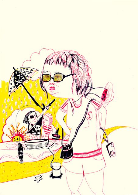 Tres tipos distintos de amantes del mar. Boligrafo y Rotulador.