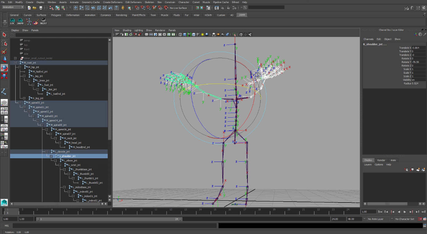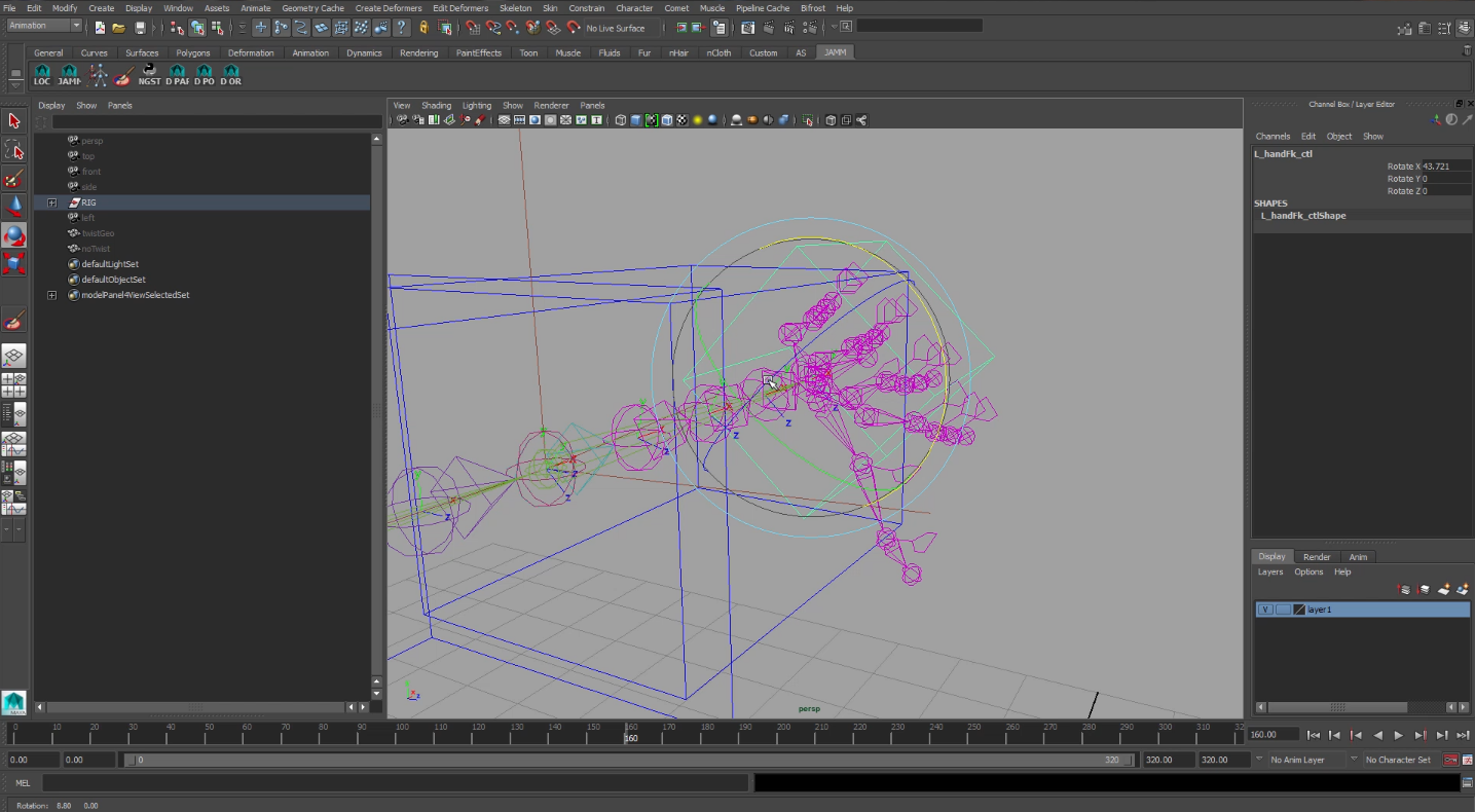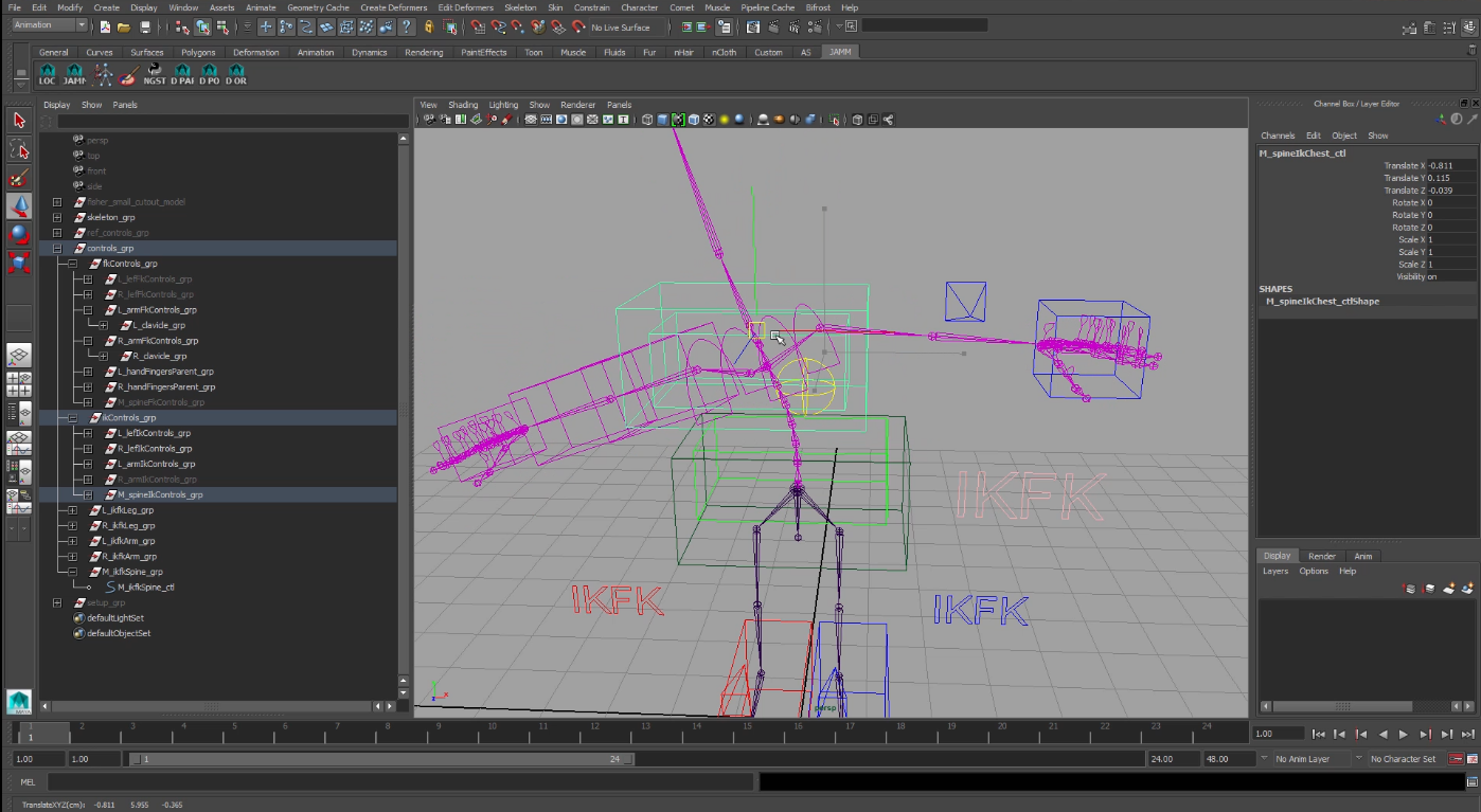 Con esto ya tendríamos un rig completo para animación. Pero siempre se le pueden añadir mas funcionalidades para hacerle mas fácil la vida al animador.