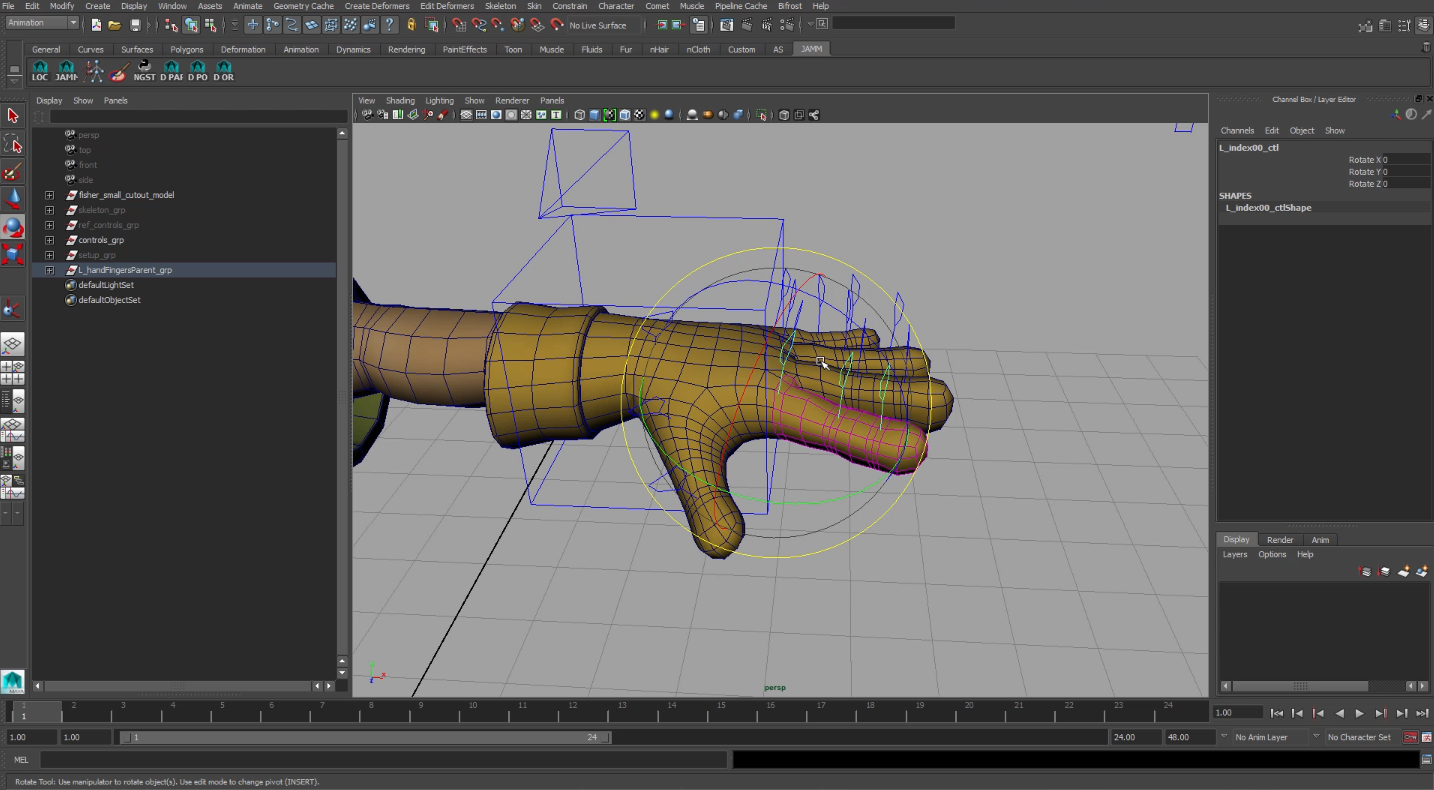 Otra parte importante antes de terminar el rig es limpiar la escena, aunque ya deberíamos de haber ido renombrandolo todo hay que revisarlo de nuevo.