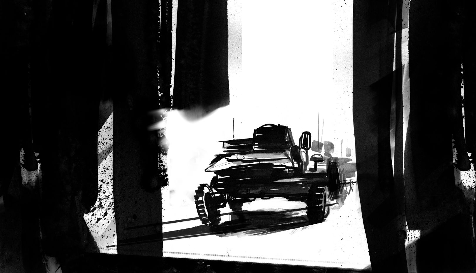 | example of a layered illustration (left) and screen from a movie after postproduction (right) |
