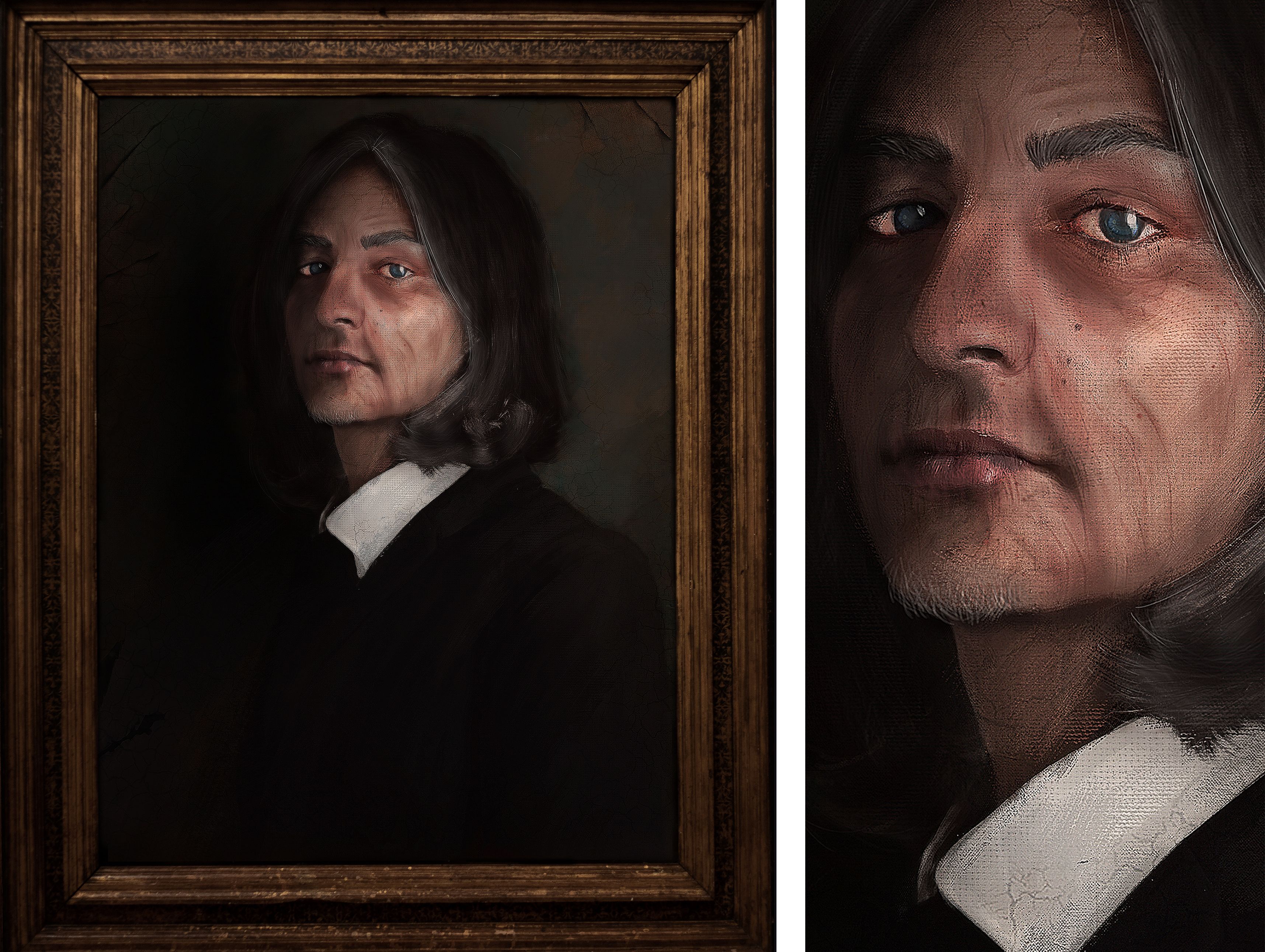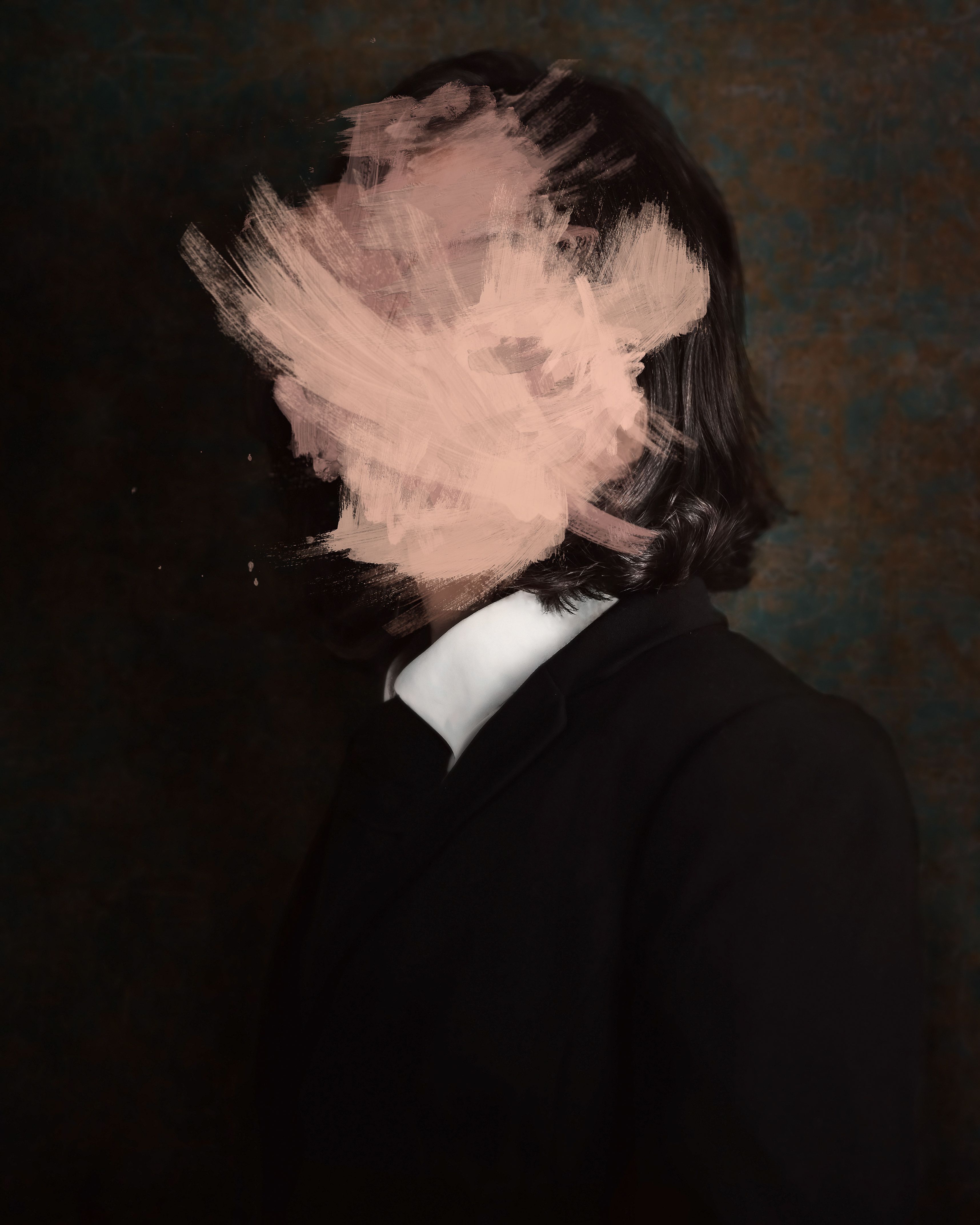 Cuando me planteé esta mini serie sabía que necesitaba una pintura (bueno en realidad dos), no me valía con tener un retrato sólo, así que en cuanto tuve la fotografía editada me dispuse a pintar. Tomando como base el retrato anterior pinté con tableta gráfica "la pintura" simulando los brochazos y texturas de un cuadro.