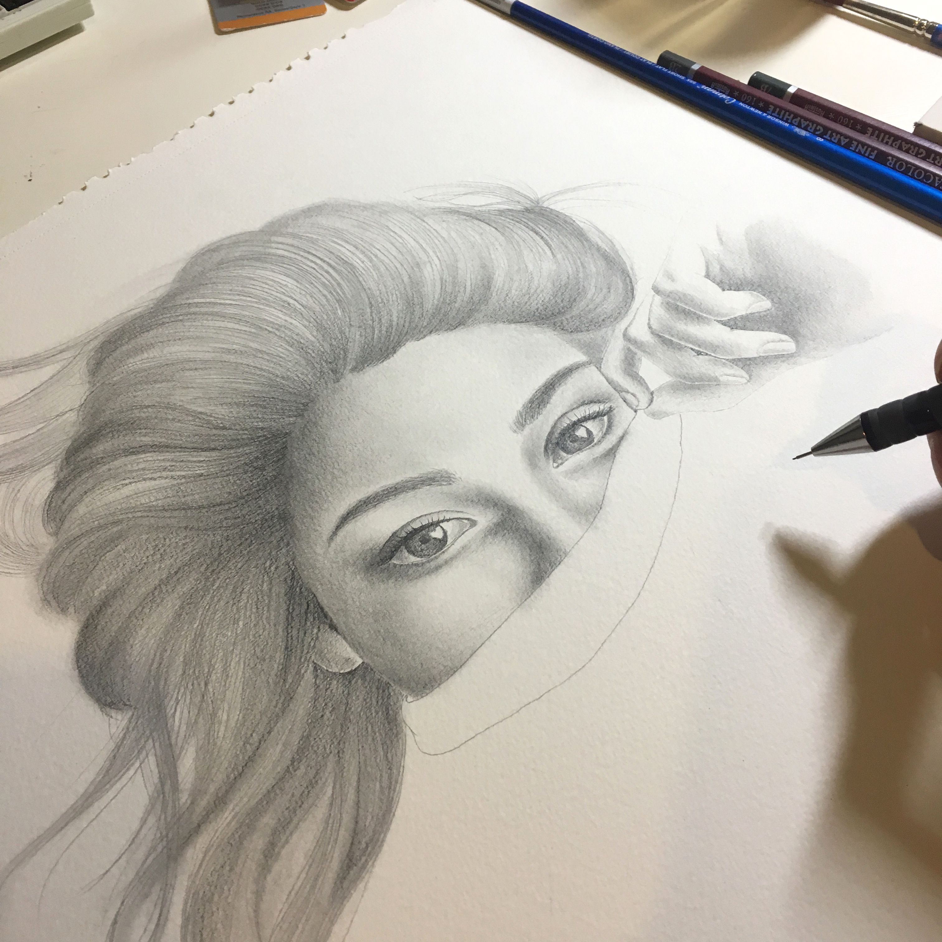 Hay algo muy mágico en ver el proceso así que aquí se los comparto. Primero realicé el dibujo a lápiz basándome en una fotografía que encontré en pinterest.