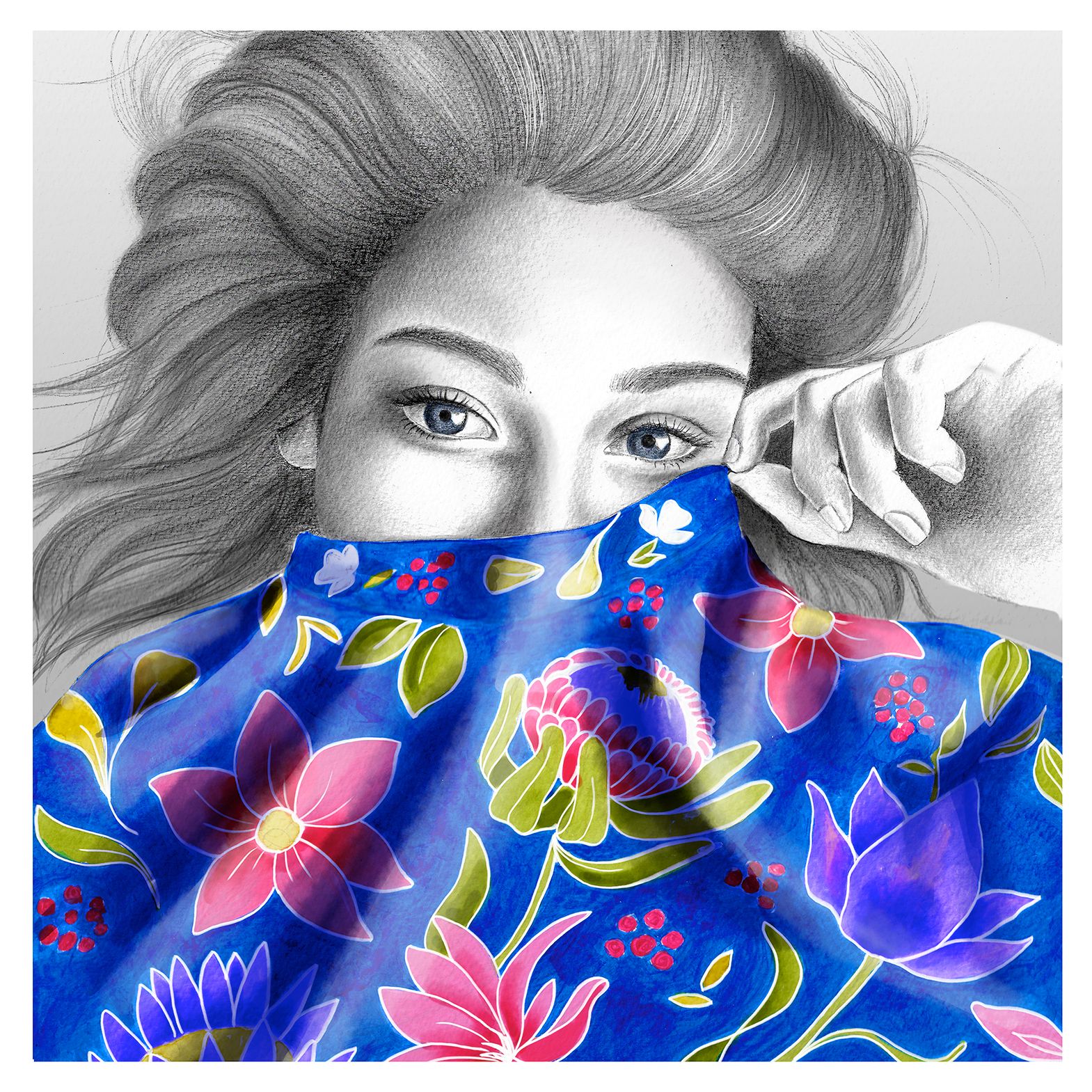 Luego de tener el dibujo base lo esceneé para editarlo en photoshop. Por cierto, la textura de flores la pinté con acrílico. Y hasta aquí no luce muy especial pero por suerte existe la magia del photoshop. :)