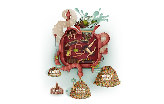Diseño de Web, folletos, infografías e ilustarciones para la campaña "Un mundo de bajo consumo" de la ONG Amigos de la tierra. Créditos: Programación web: Simboloxico