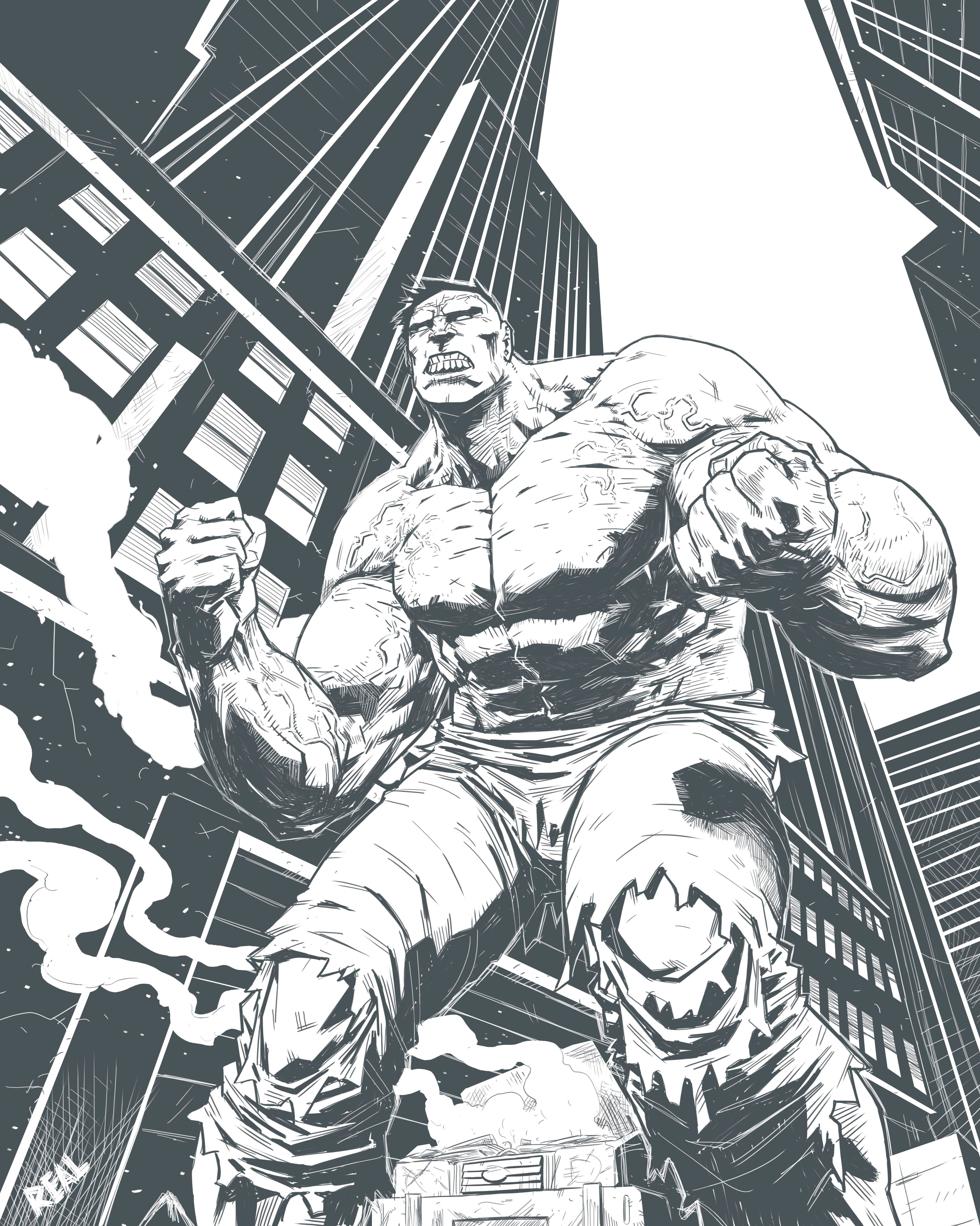 La intención era crear una ilustración potente de Hulk para mi porfolio de cara a enseñarlo a editoriales en un futuro.