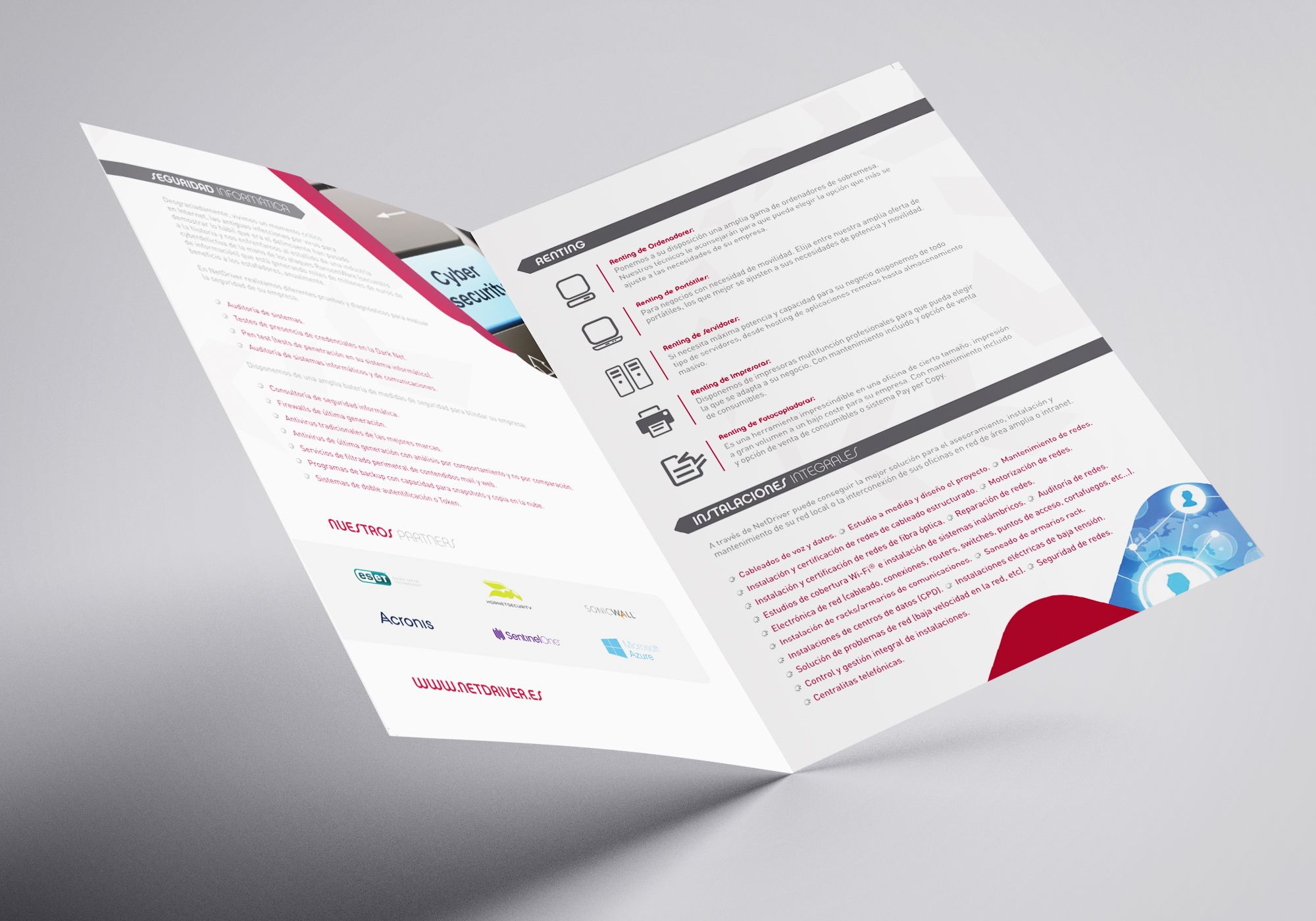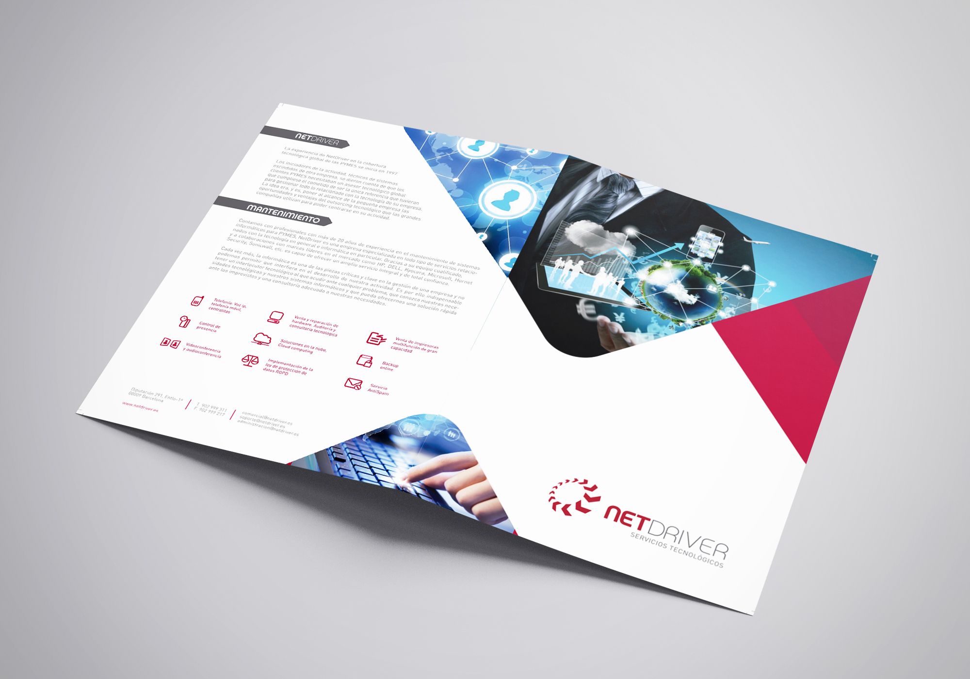 Diseño y Creación e implementación de contenido en carpeta A3 de presentación para Net Driver