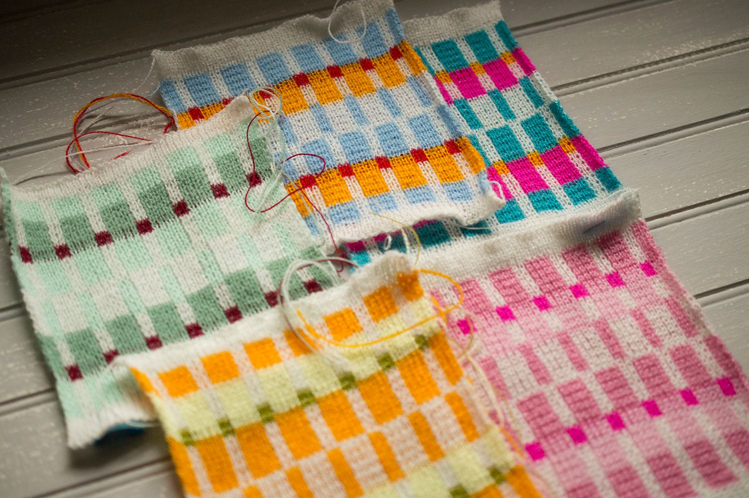 Justo te había pedido que publicaras fotos de los tejidos ¡y estaban acá! Gracias, es una delicia ver cómo las paletas se transforman en tejido.