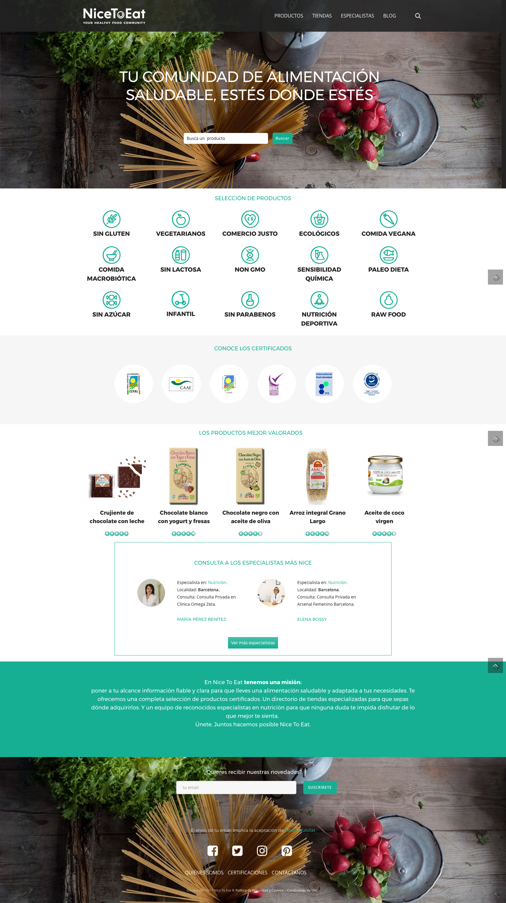 Redacción de copys y contenidos para la web Nice to Eat, especializada en alimentación saludable.