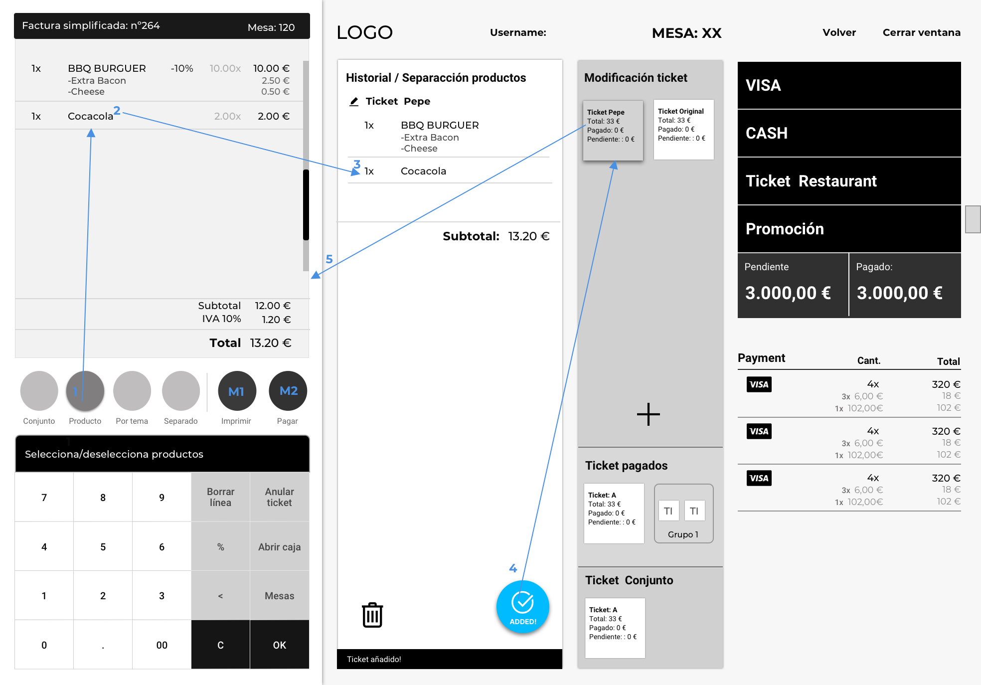 Separación de ticket por producto