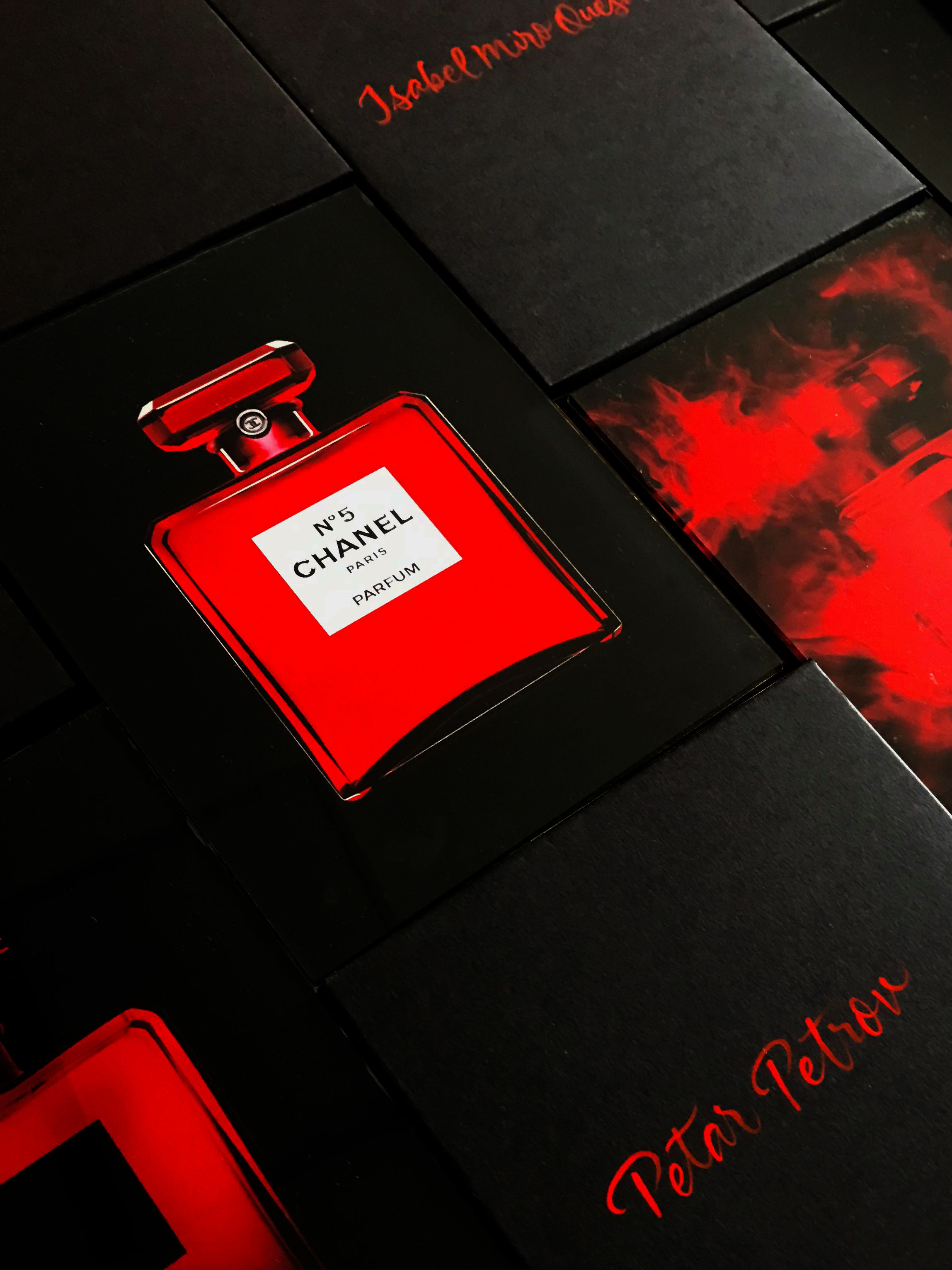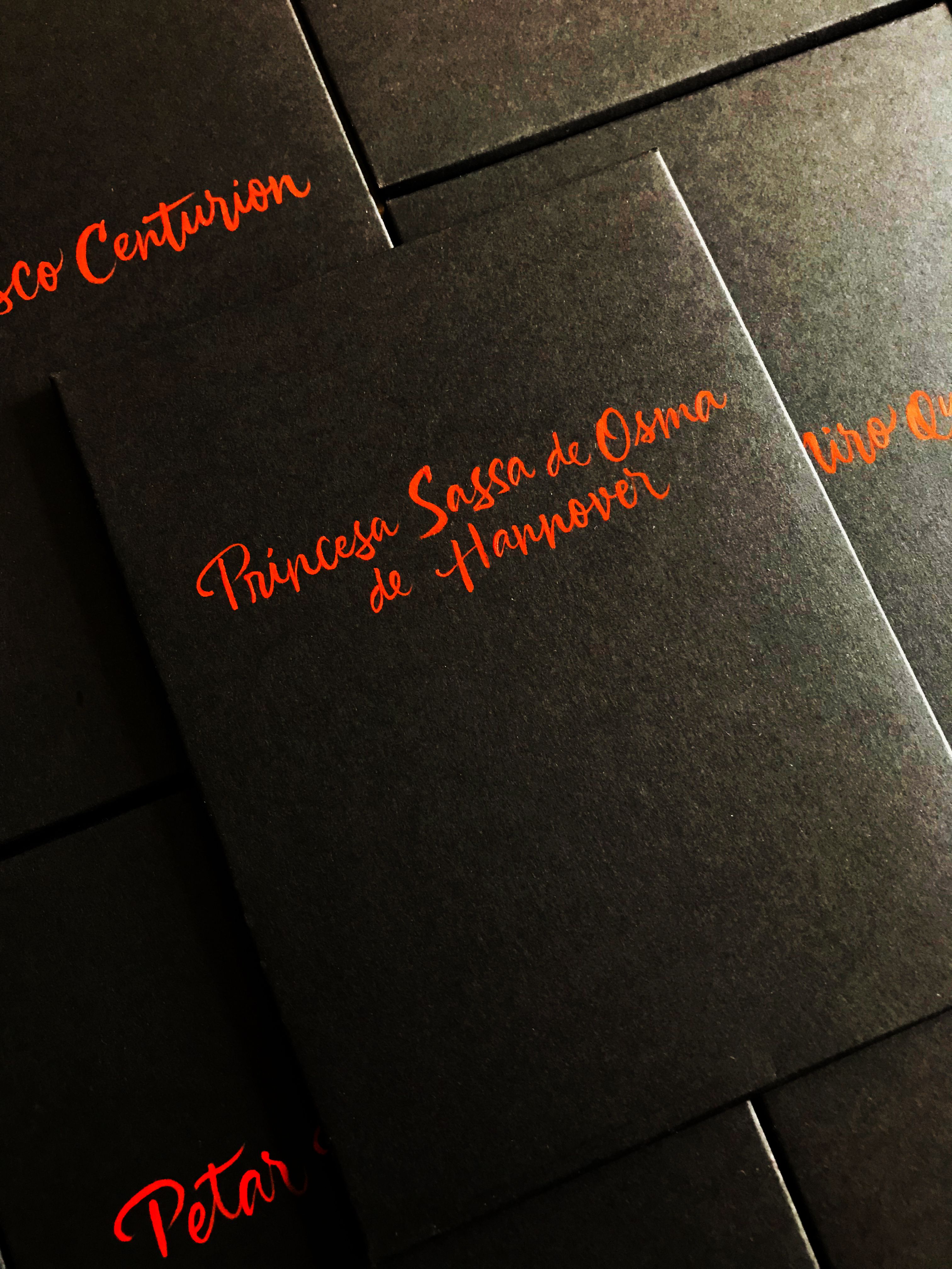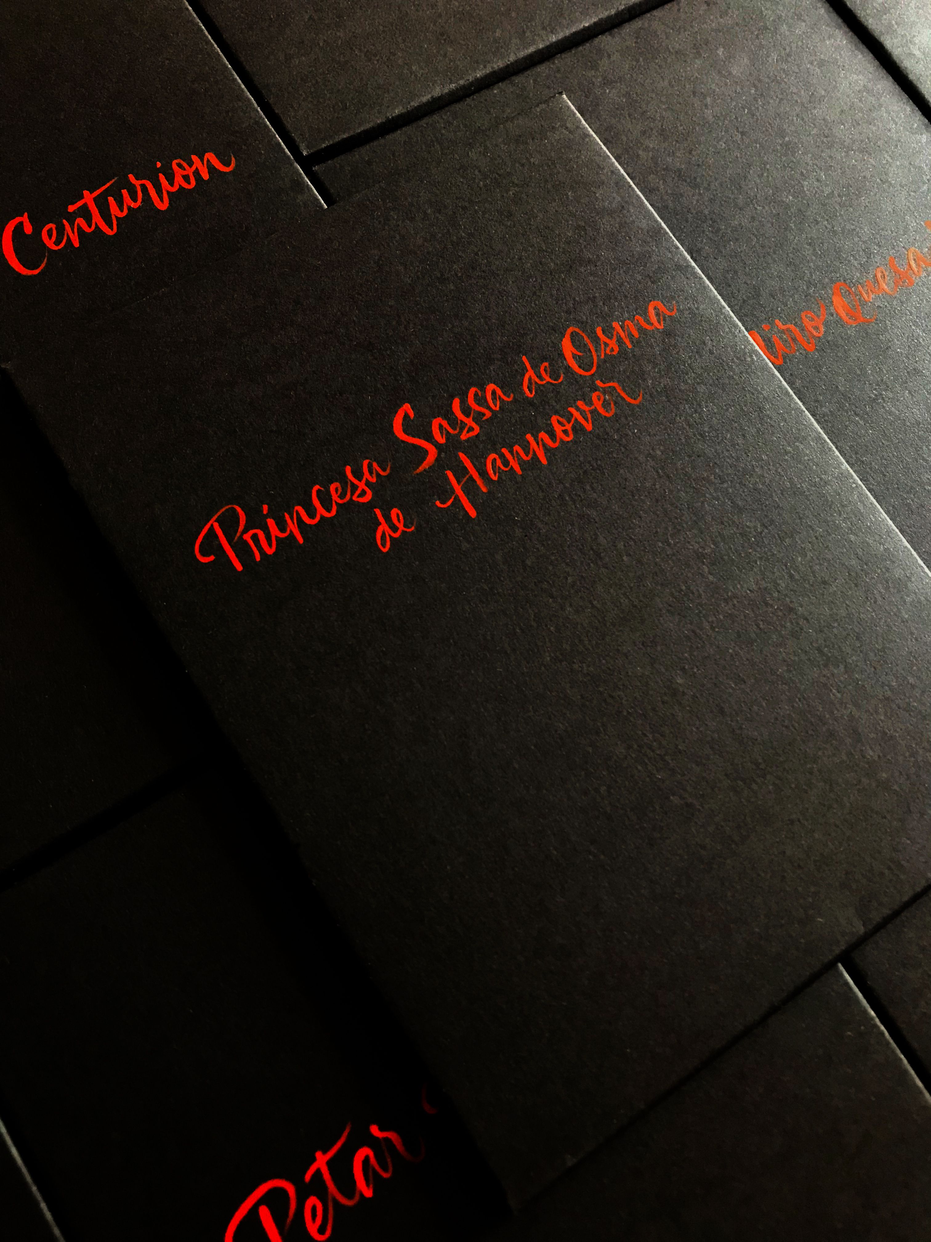 Caligrafía con pincel para los sobres de invitación para el lanzamiento de la reconocida marca Chanel en Lima.