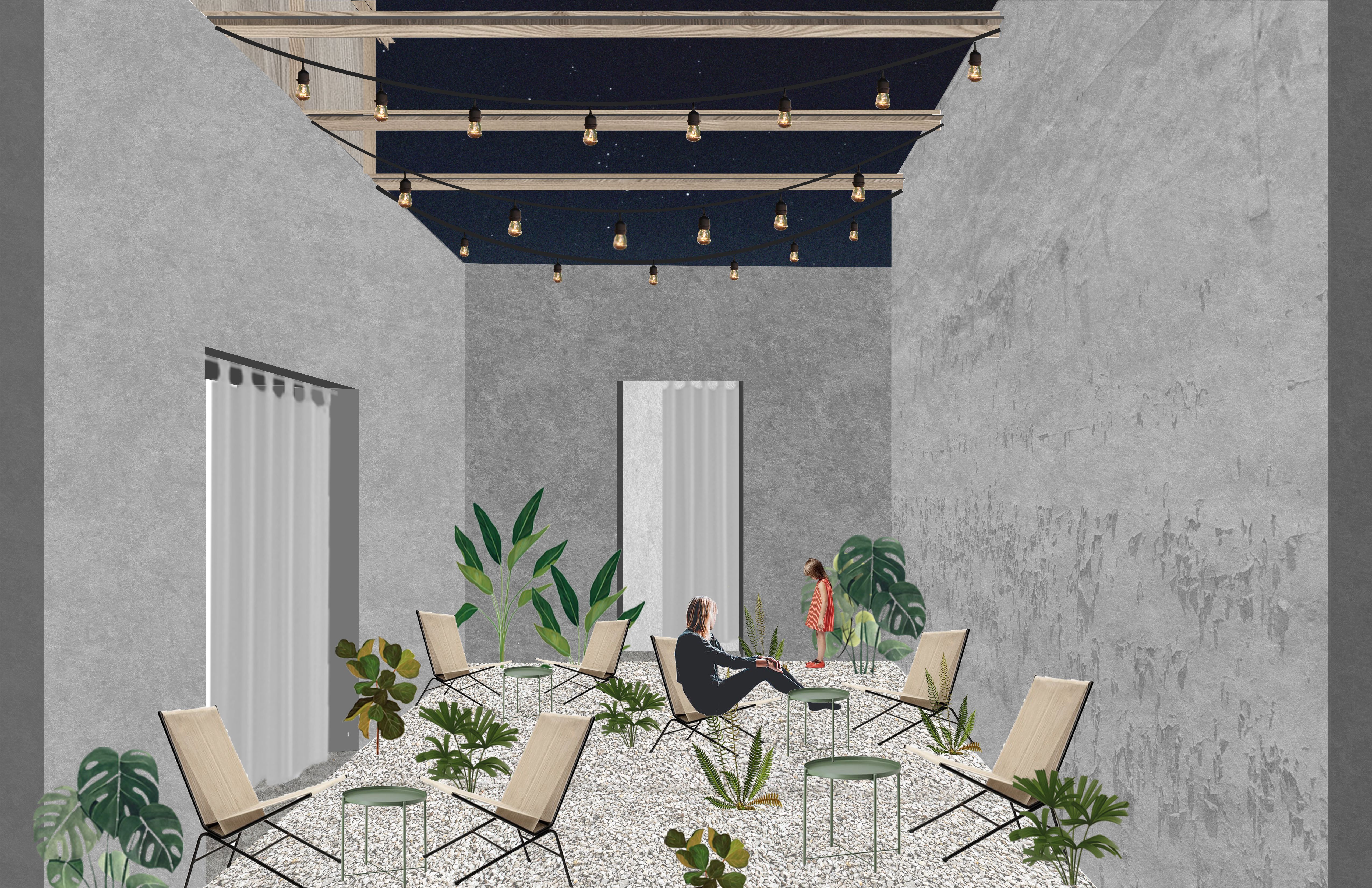 El proyecto consiste en adaptar una casa de finales de siglo XIX en un espacio que albergue las funciones de restaurante, galería y principalmente bar en el centro histórico de la Cd. de Oaxaca. La falta de techumbre del inmueble actual provocó que el elemento central de la propuesta fuera una cubierta. Se diseñó a base de una estructura metálica y una serie de conos truncados que permiten al visitante observar las estrellas fungiendo también como aislante acústico al igual que protección de la intemperie. Los desniveles actuales del sitio se acentúan con unas escaleras centrales que recorren todo el espacio central. Las terrazas son contenidas por jardineras que introducen vegetación y una atmósfera de exterior a la propuesta.