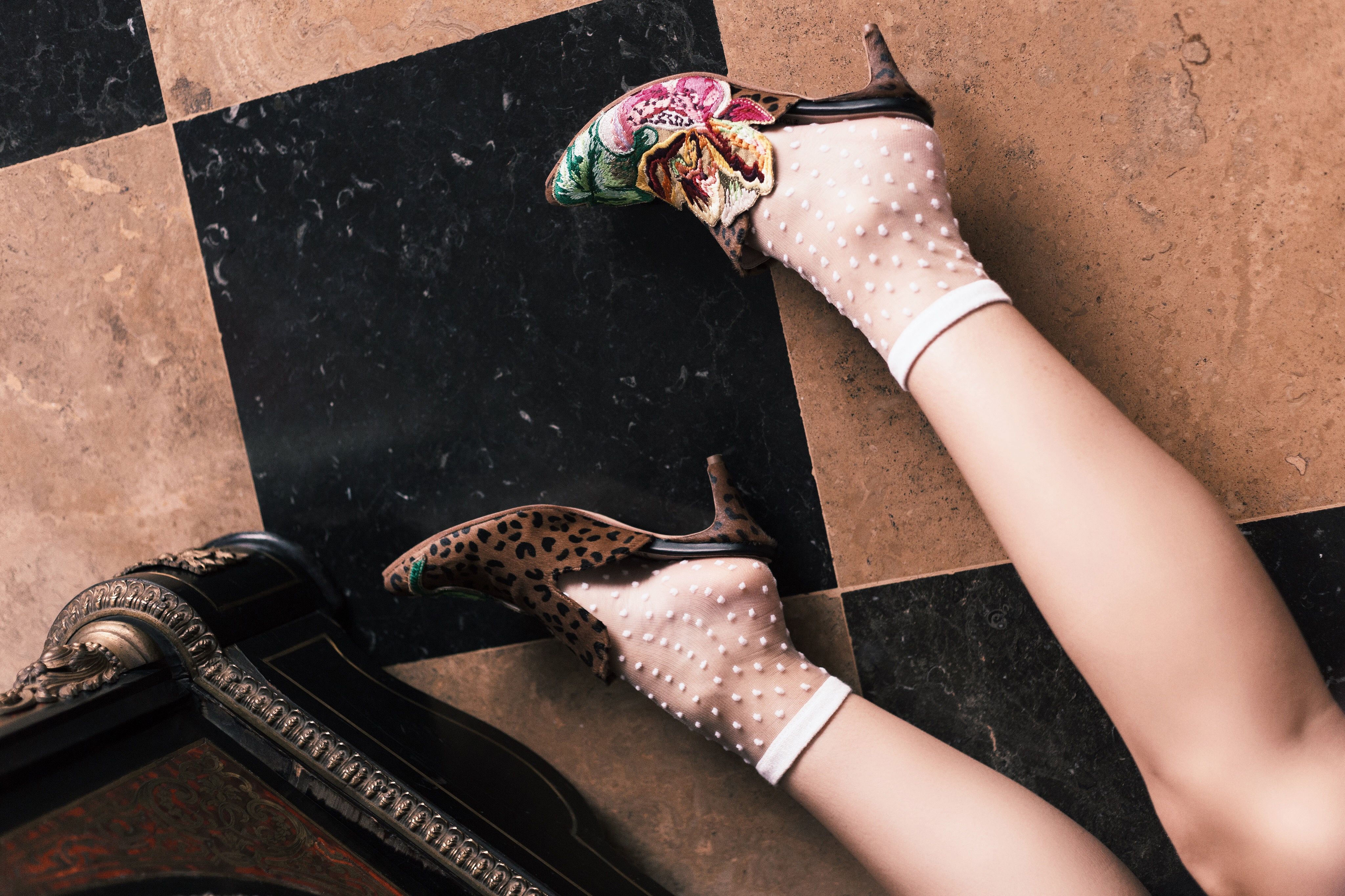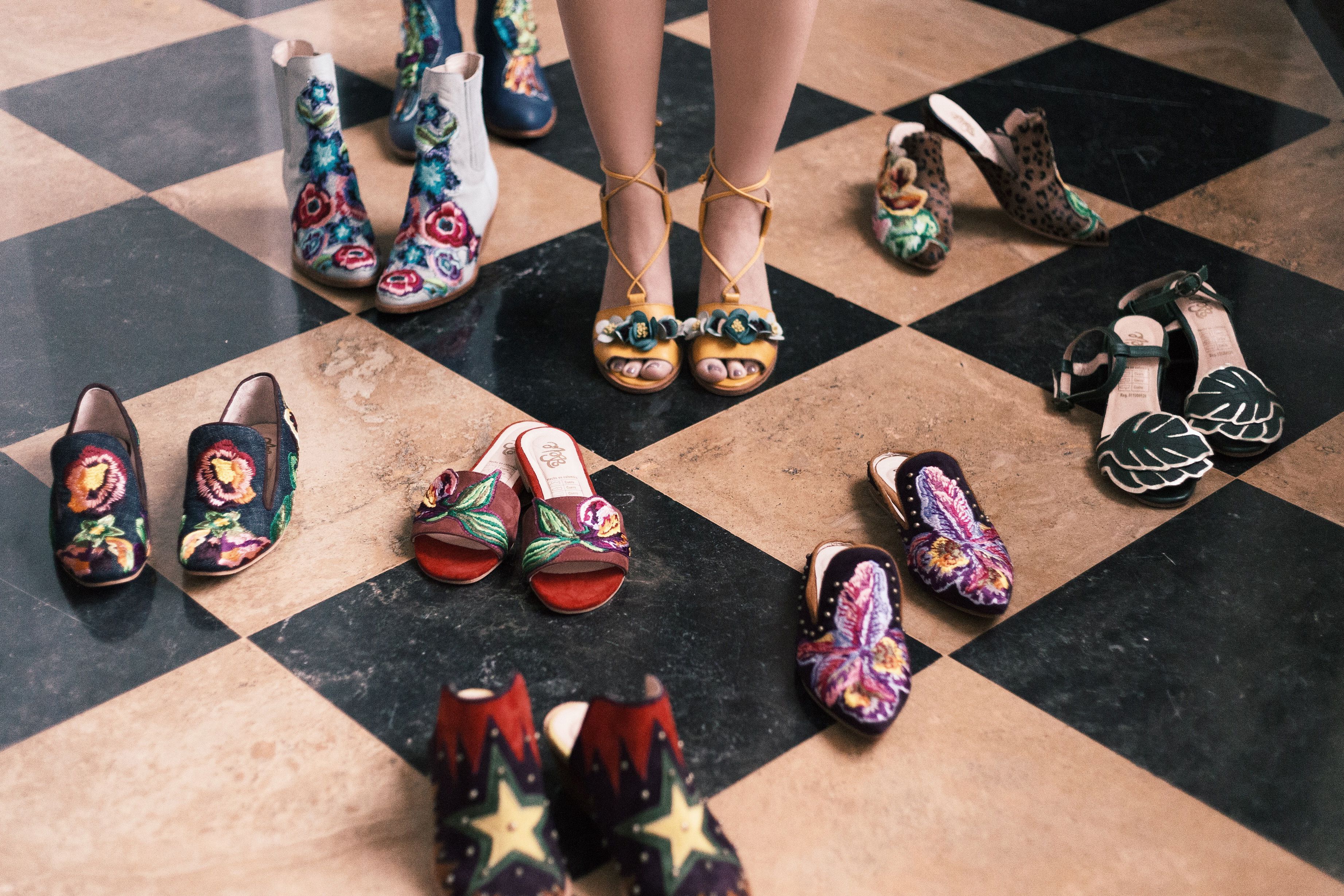• "Exotic Treasures" Calzado Bordado en cuero.