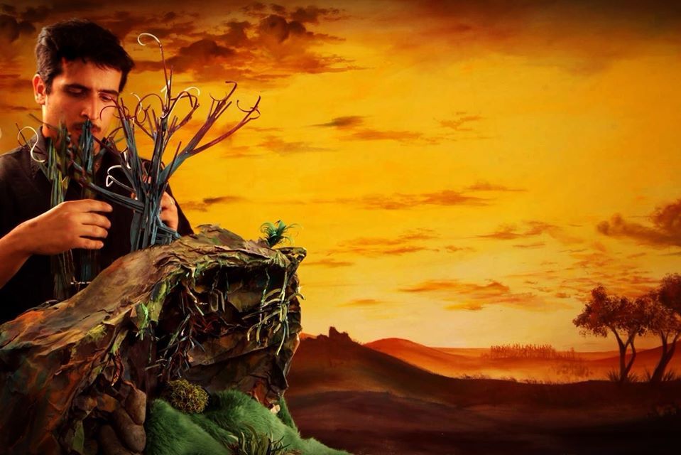 Pintando fondo para escenografía- acrílico sobre lienzo Armando maqueta de escenografía tigre- técnica mixta Maqueta de stop motion atardecerPintura de cielo atardecer- acrílico sobre lienzo Escena final de la serie Construcción de escenografía Escena de la serie Serie animada