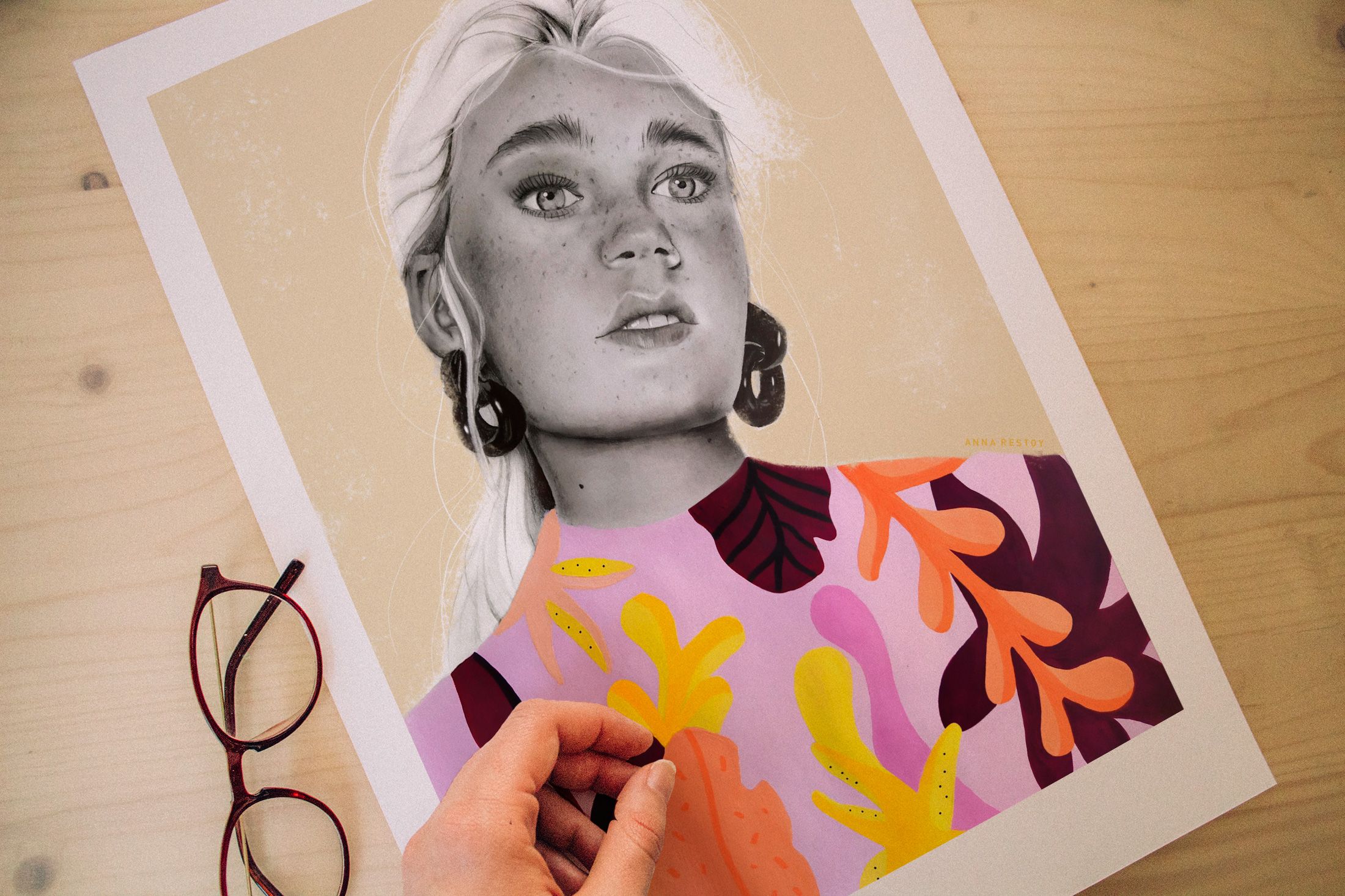 ¡He disfrutado mucho todo el proceso! Siempre me ha gustado hacer retratos, en especial con sombreado de lápiz, pero nunca había probado de combinarlo con pintura y me parece una técnica preciosa.