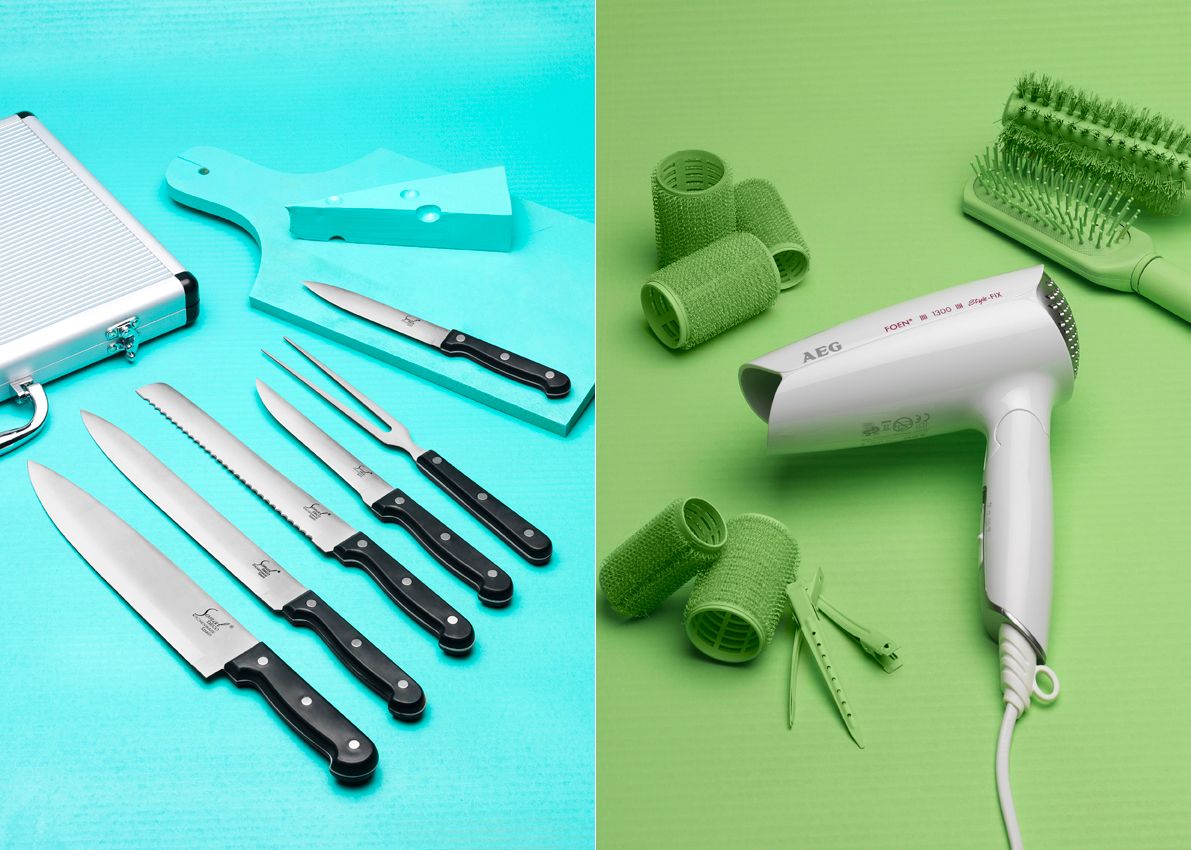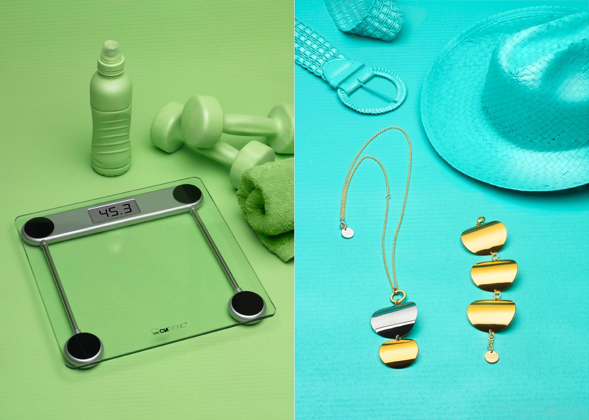 La solución mas sencilla, elegante y económica pero a su vez mas creativa fue aprobada. Coloreando tanto los fondos como el atrezo del mismo color conseguíamos situar al producto en su contexto y destacarlo sobre todo lo demás, dando unidad al catalogo a pesar de la diferencia entre unos productos y otros.