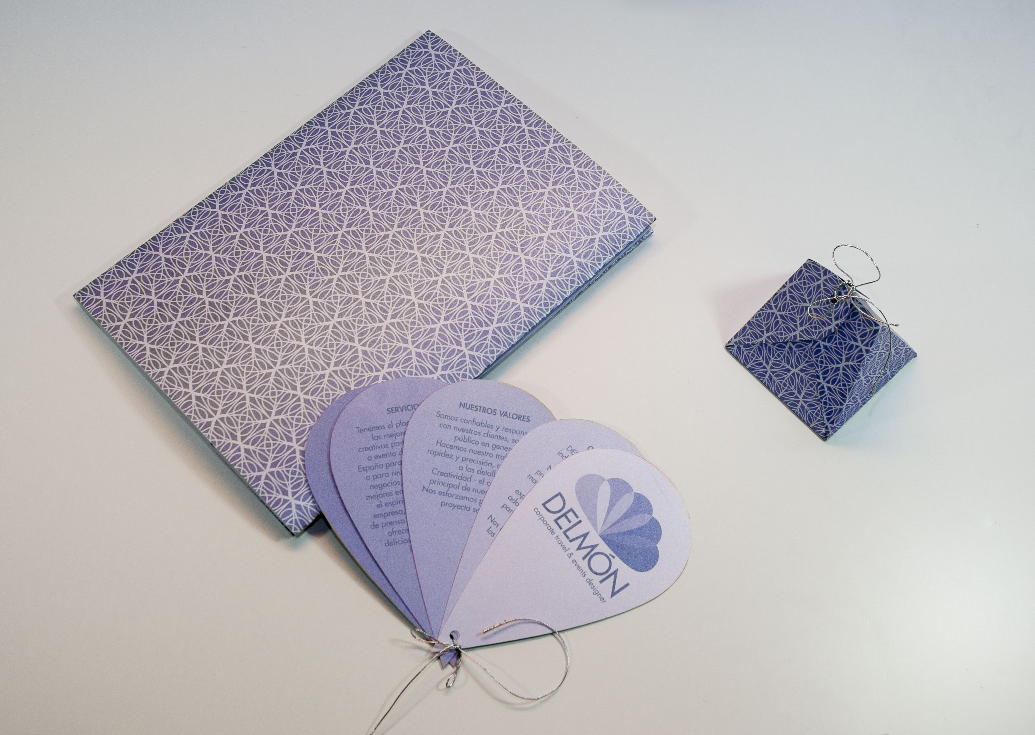 I created the logo which is based on a fan, the booklet which has a form of the logo, the corporate texture, the poster, the small box for gift.