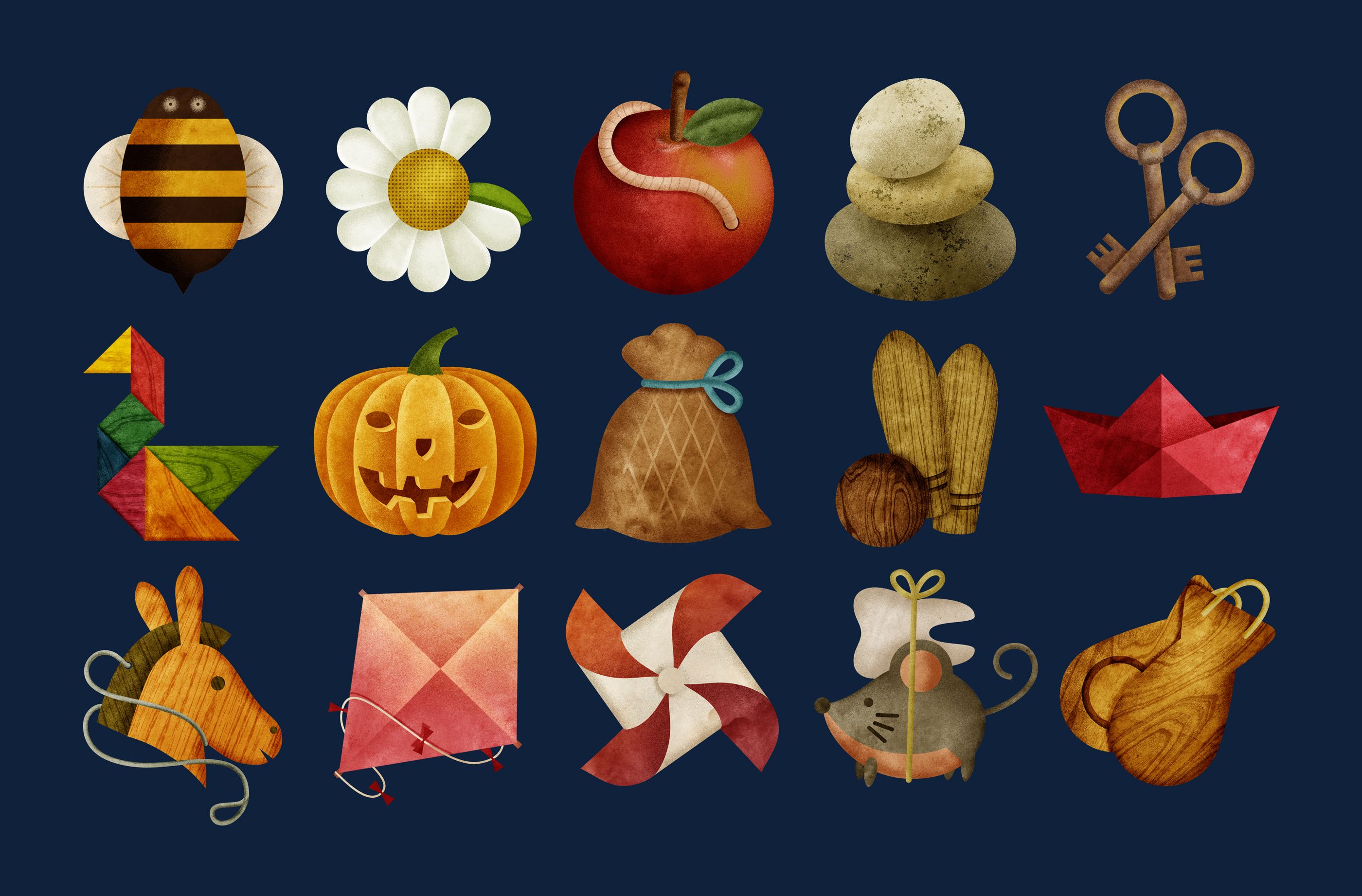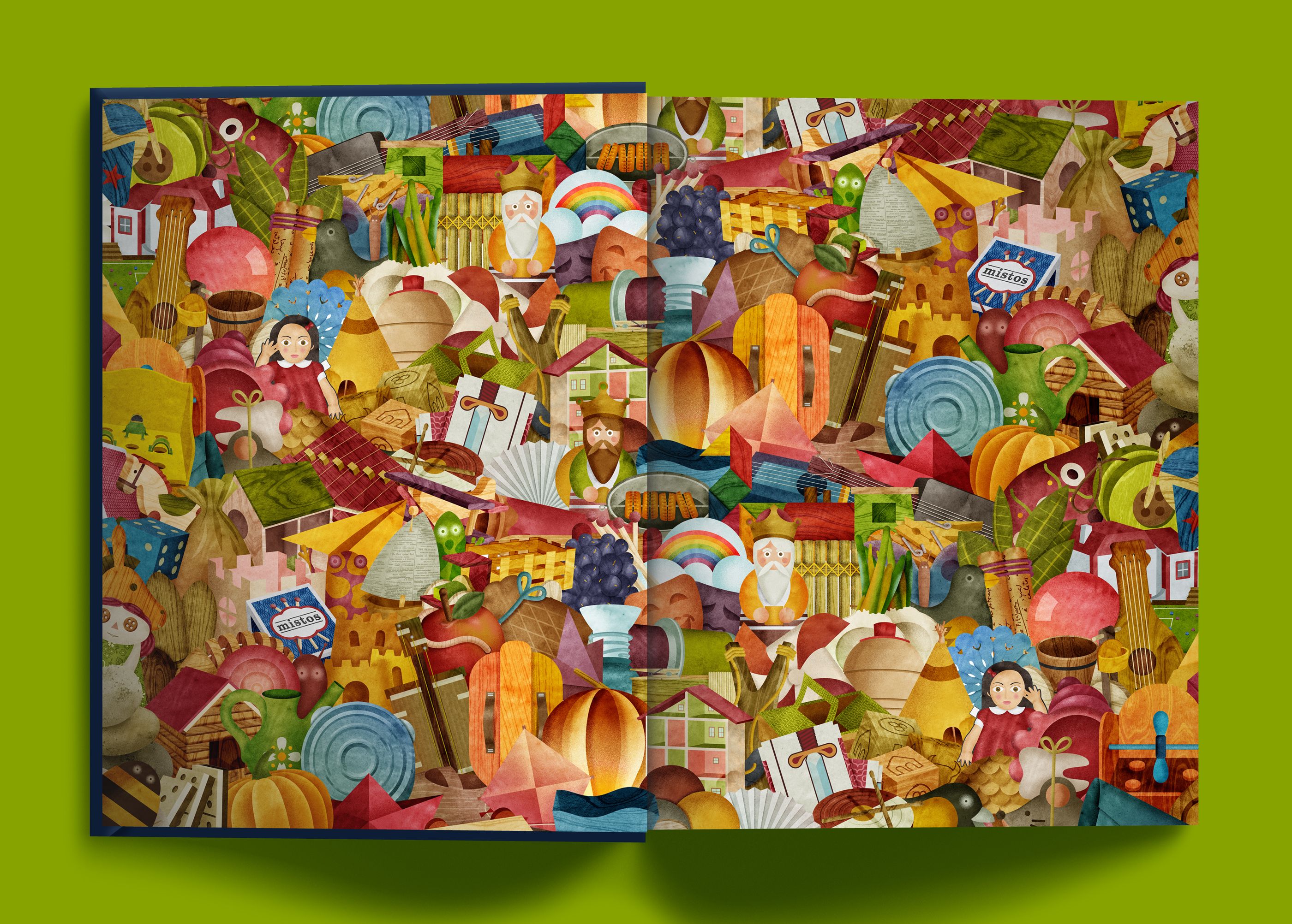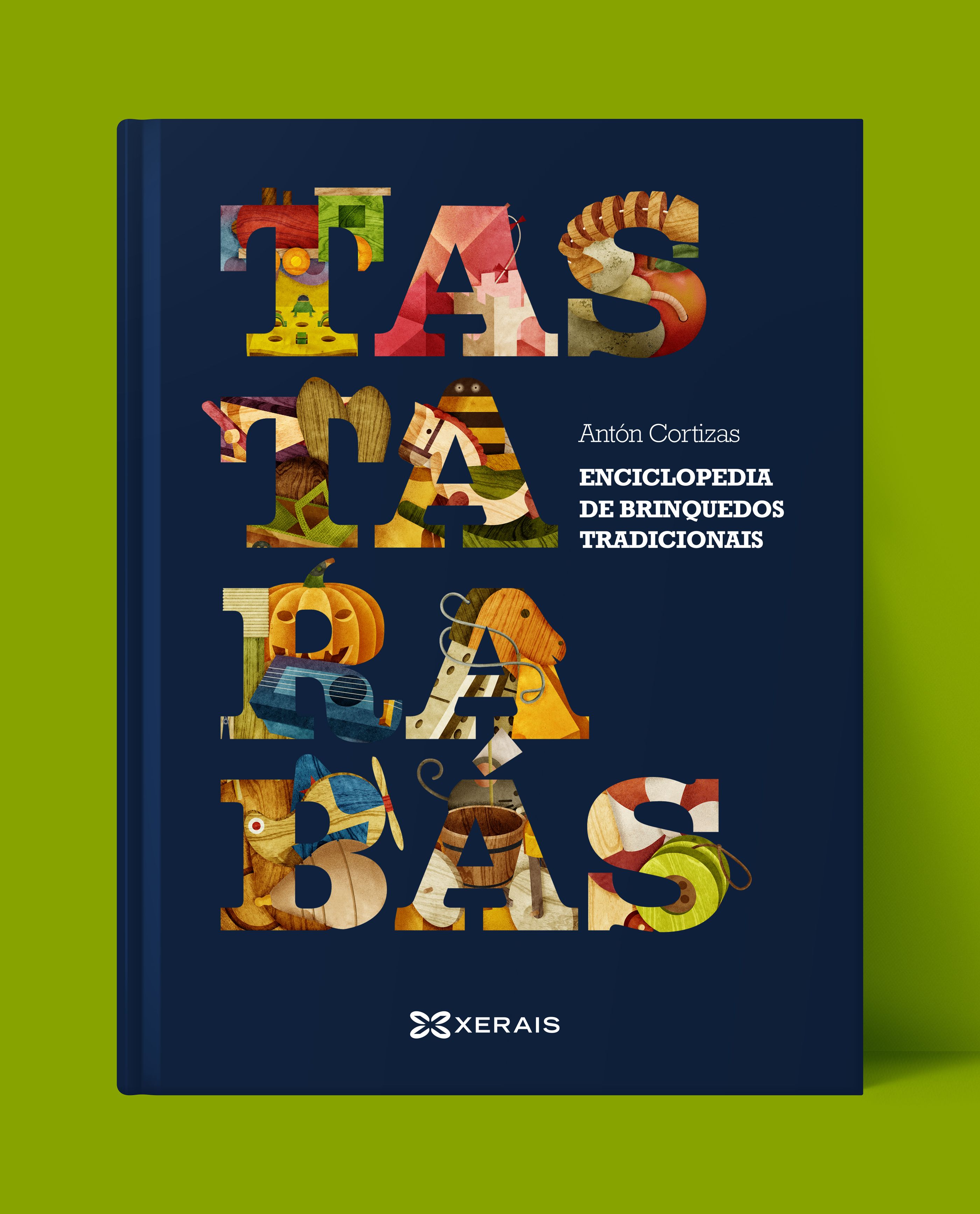 Diseño de portada e ilustraciones para Tastarabás ( Antón Cortizas, Edicións Xerais ), una enciclopedia de juegos y juguetes tradicionales de Galicia.