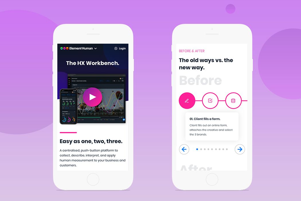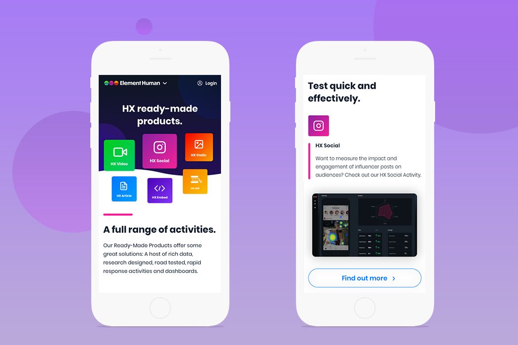 User interface design for Element Human Website’s Products pages. Responsive landing pages which outlines the different products, features and benefits.