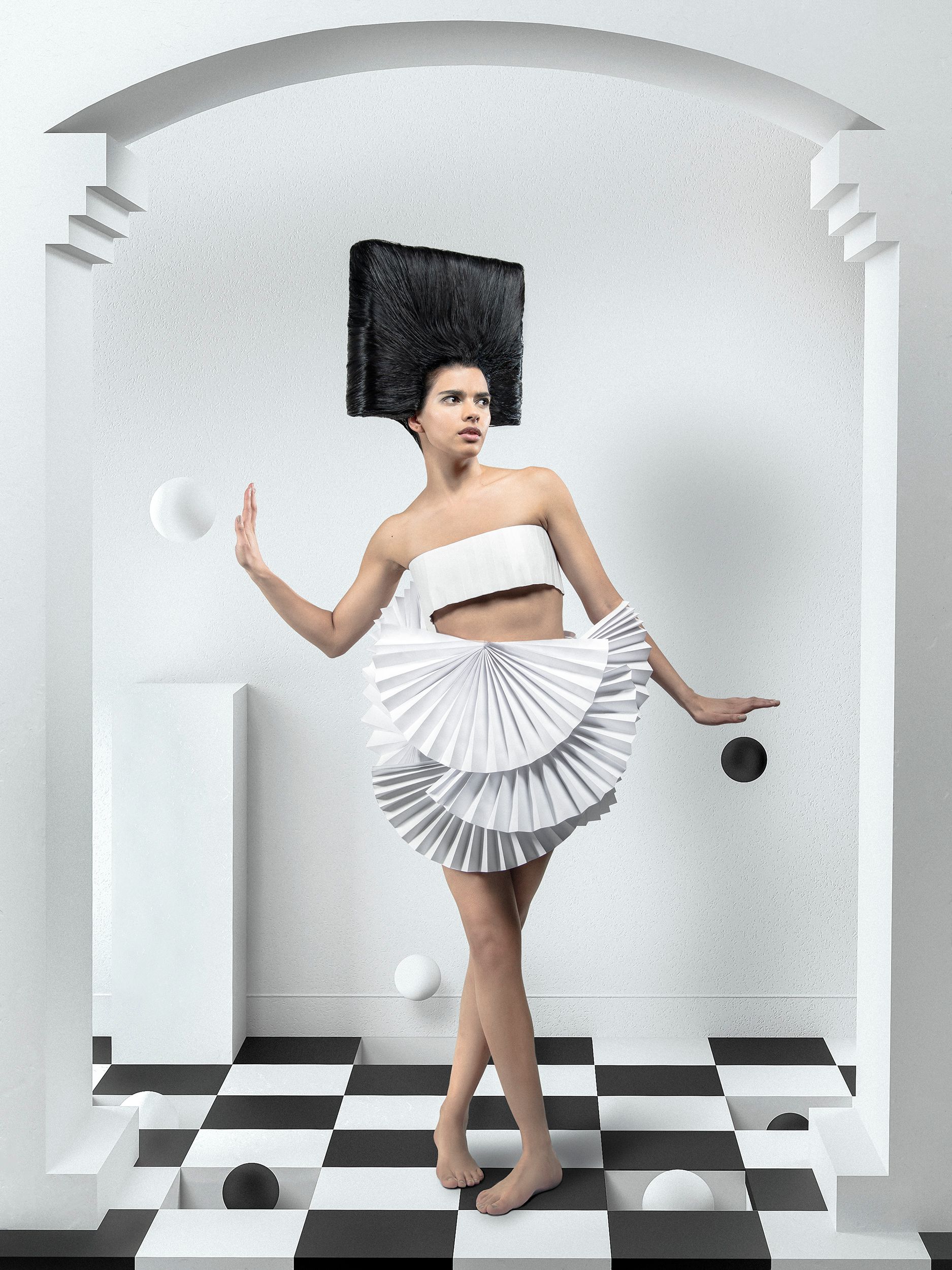 El vestuario esta hecho con papel y fue inspirado en las obras surrealistas, el mensaje con el papel es mostrar como un sustrato efímero puede llegar a tener un impacto en el medio de la moda, puesto que la mayoría de prendas están diseñadas para deteriorarse con el tiempo a corto plazo, quise con esto llevarlo al extremo usando el papel para dar un mensaje sobre el sostenimiento y el cuidado del medio ambiente.