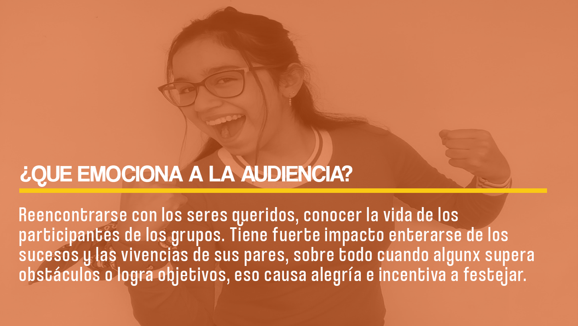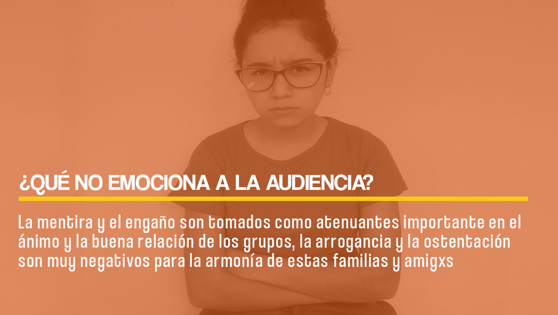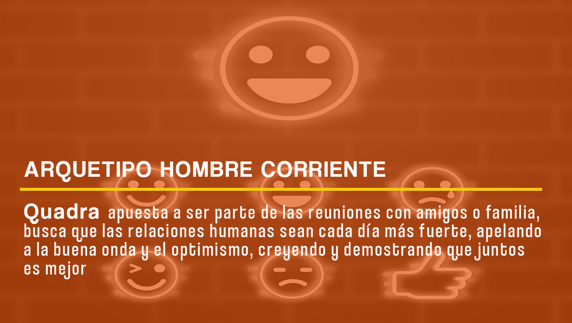 Hicimos un relato para la presentación de una nueva hamburguesa. tomamos como público a los jovenes que van a clases en colegios o universidades. Comenzamos con una canción alegre, diciendo "cuando comenzó la cuarentena, chau alarma" con una joven (Mi hija) con expresiones de felicidad por no tener que cumplir horarios. La canción alegre se diluye mientras mostramos las expresiones de aburrimiento y cansancio. Luego ponemos que paso muchísimo tiempo de cuarentena y comienza una canción triste acompañada con expresiones de tristeza y soledad y su hermana que la ve (mi otra hija, con una hamburgesa en la mano) conecta con ella, se le acerca y le da un abrazo. Ella sonríe y vuelve a la alegría. Y finaliza con la frase "Momentos simples, exquisita felicidad" y luego aparece la hamburguesa con la marca.
