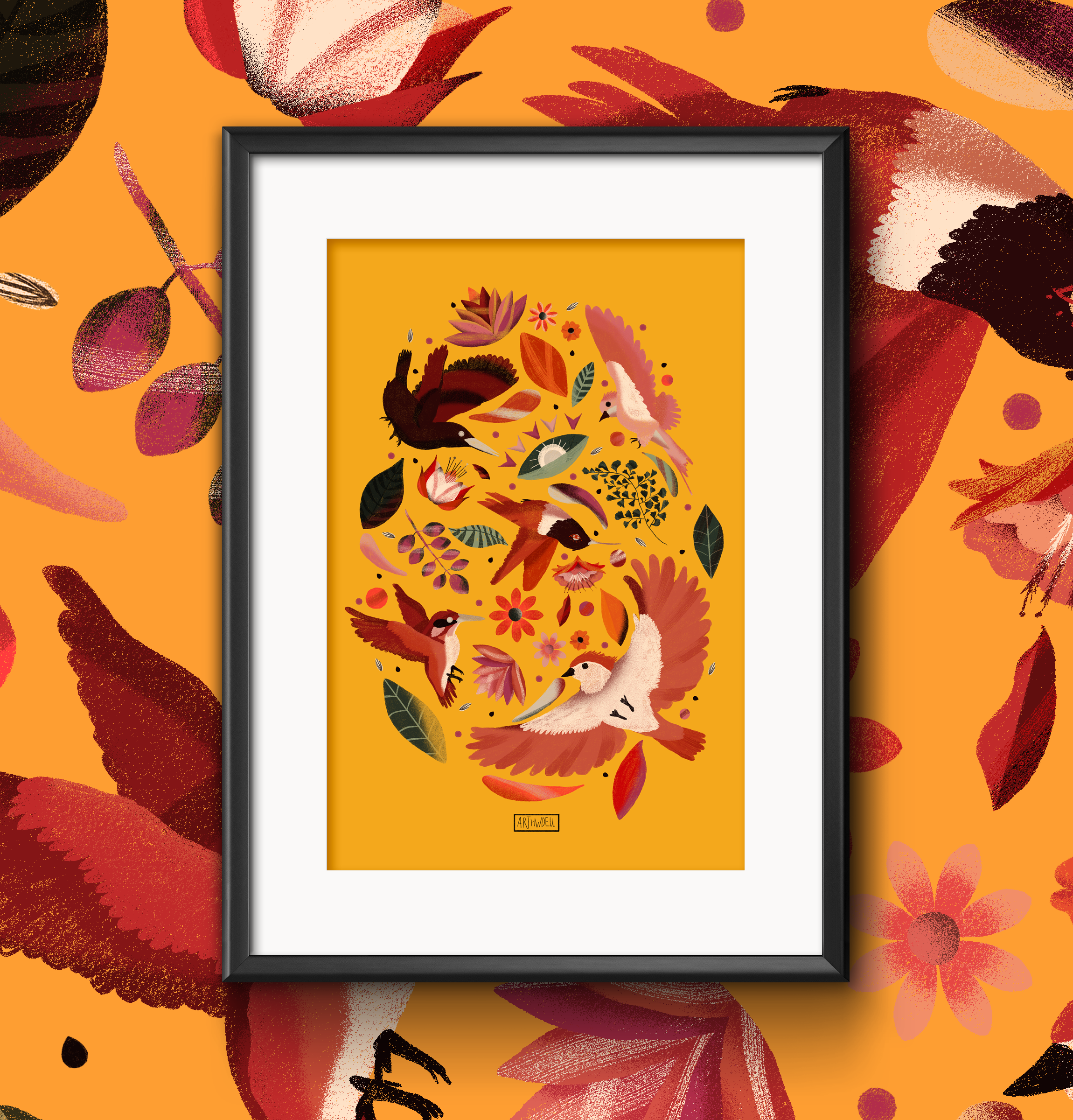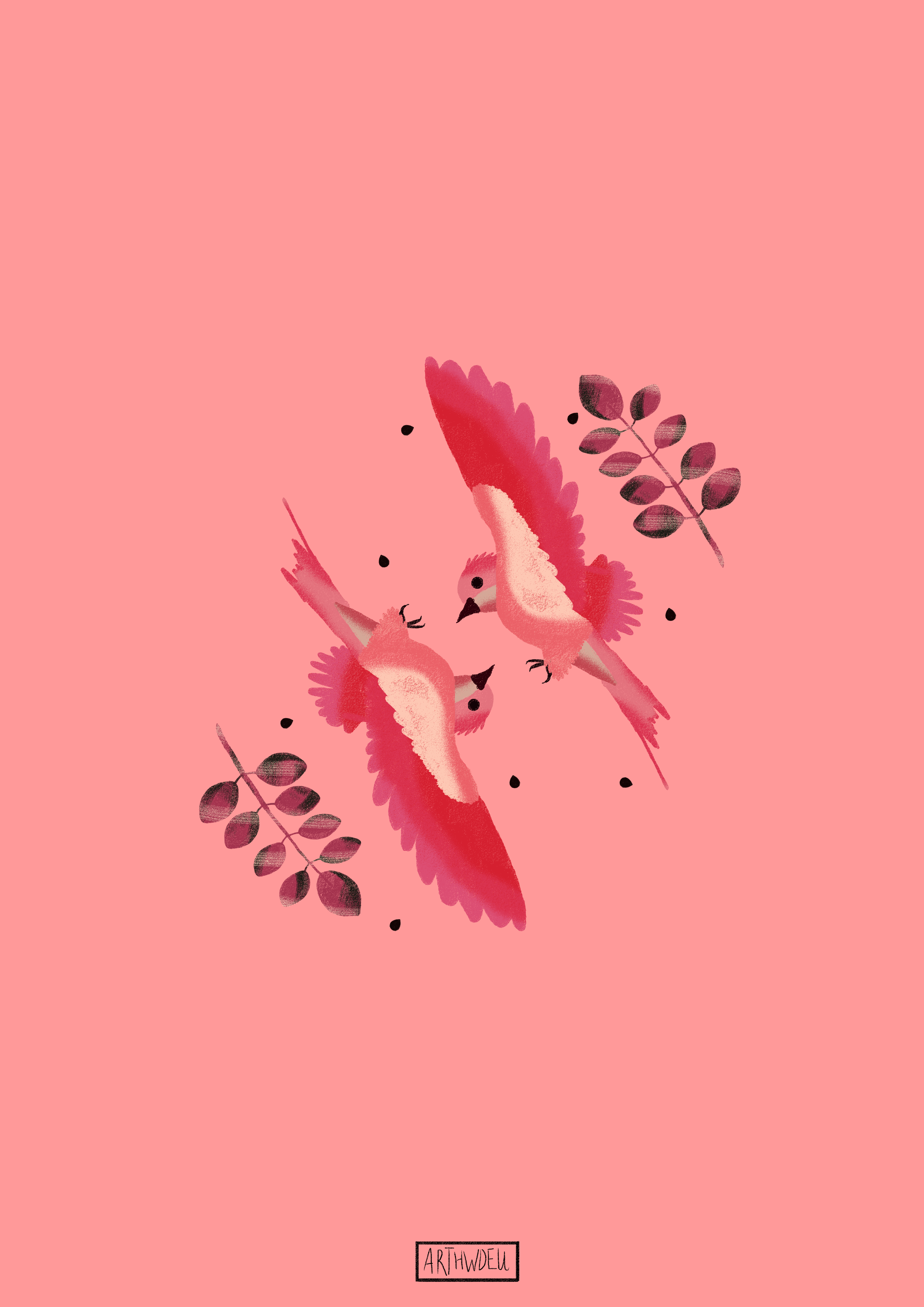 Estava com vontade de desenhar passarinhos, então encontrei algumas referências e fiquei pensando: esses bichos são tão lindos e a todo momento parece que eles estão numa mega briga pelo ar???? Então veio a ideia.