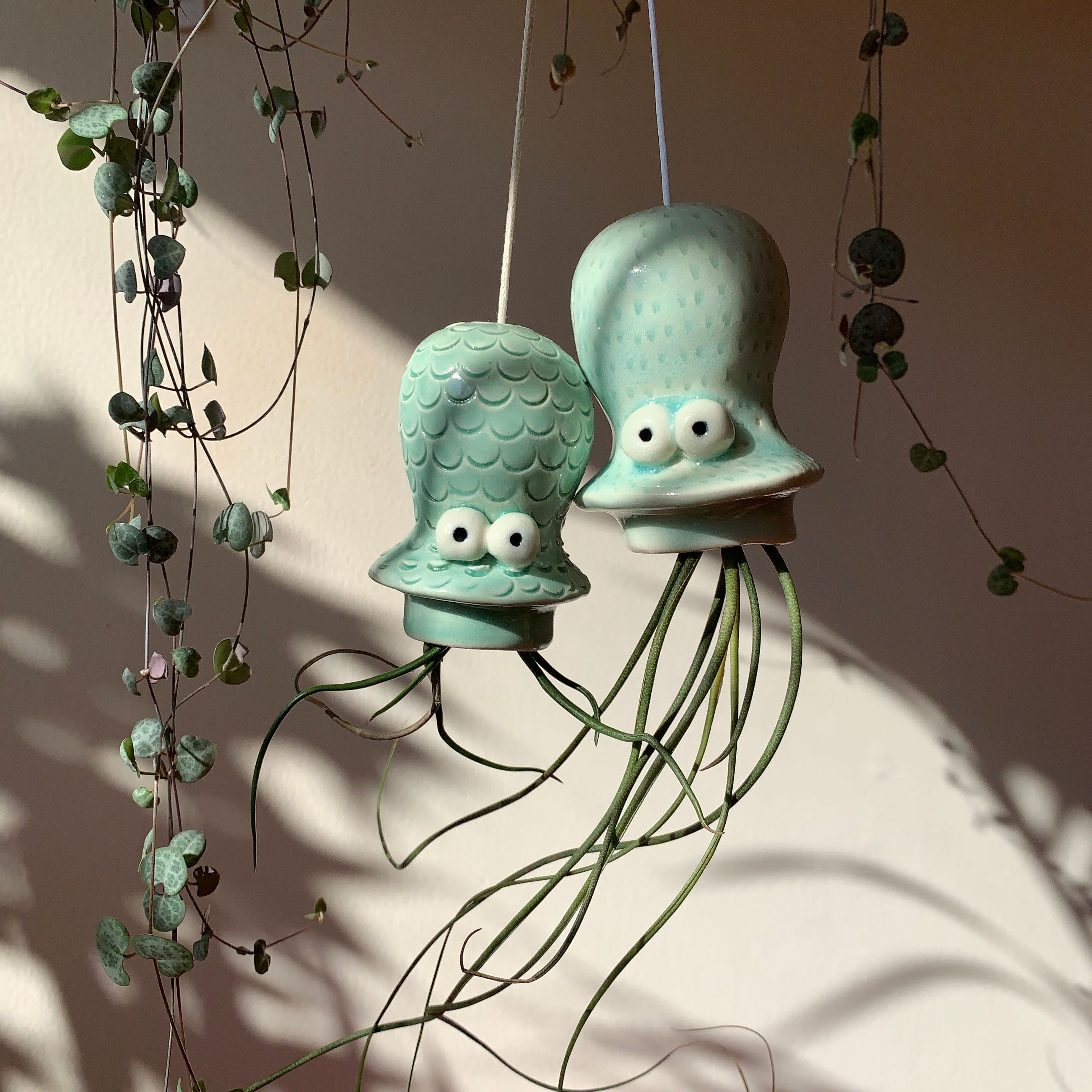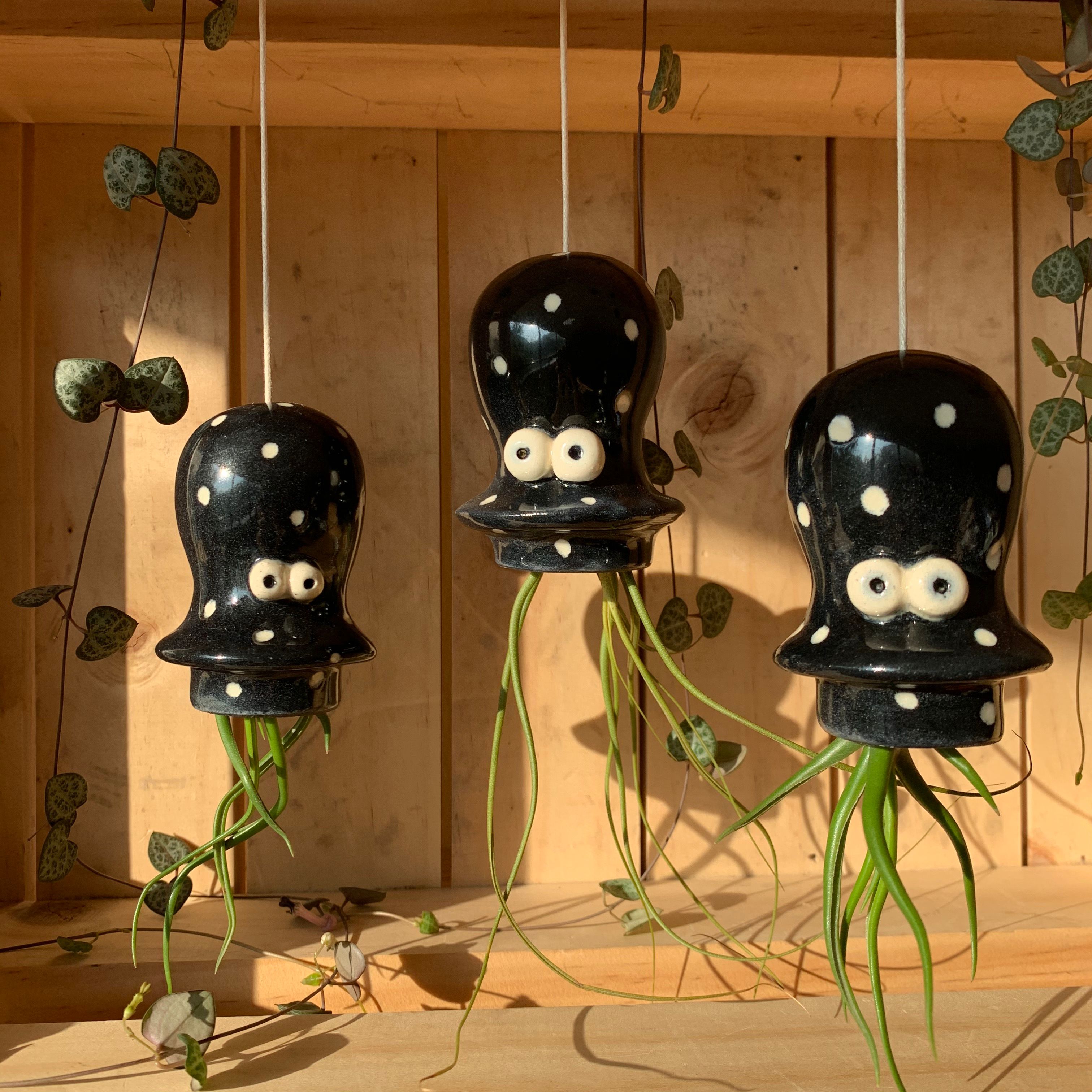 Displays colgantes moldeadas en forma de pulpos y medusas, creados específicamente para plantas de aire Tillandsias, especies, Caput Medusae y Bulbosa y Butzii que simulan los tentáculos de estos personajes.