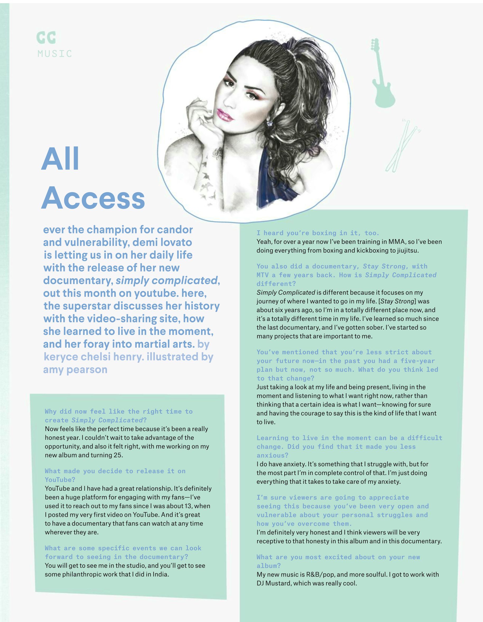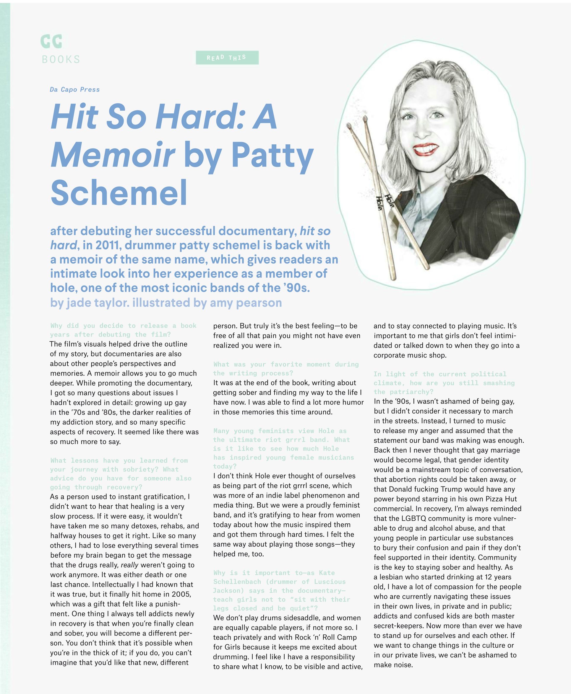 Portraits of Musicians, Demi Lovato and Patty Schemel for American magazine, 'Nylon.' These portraits were made using graphite pencil and digital techniques.